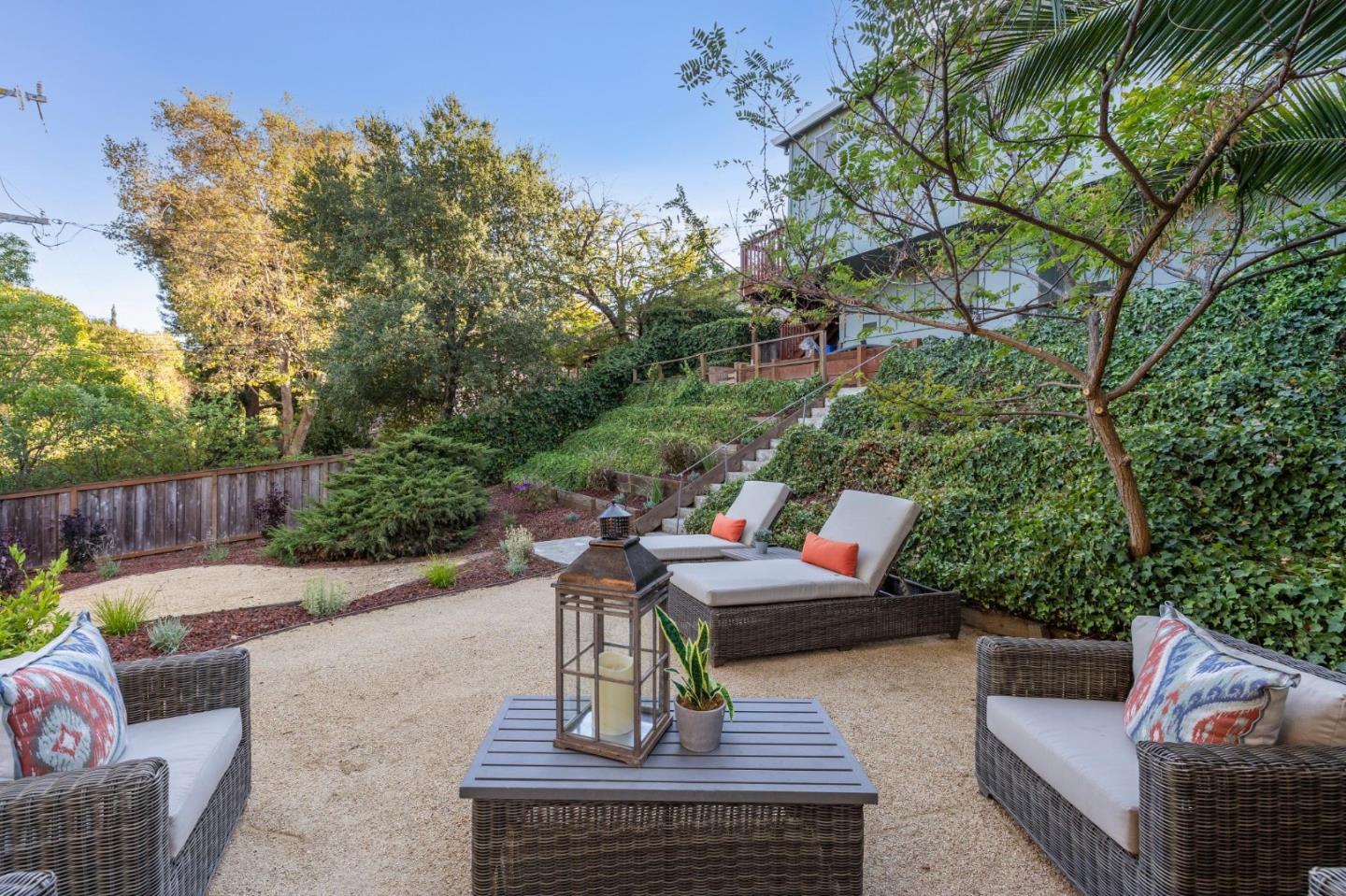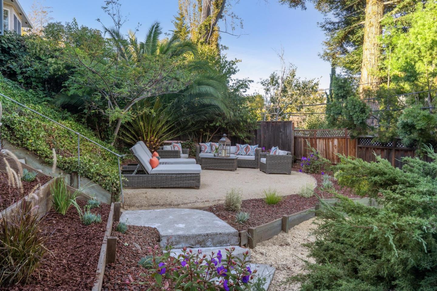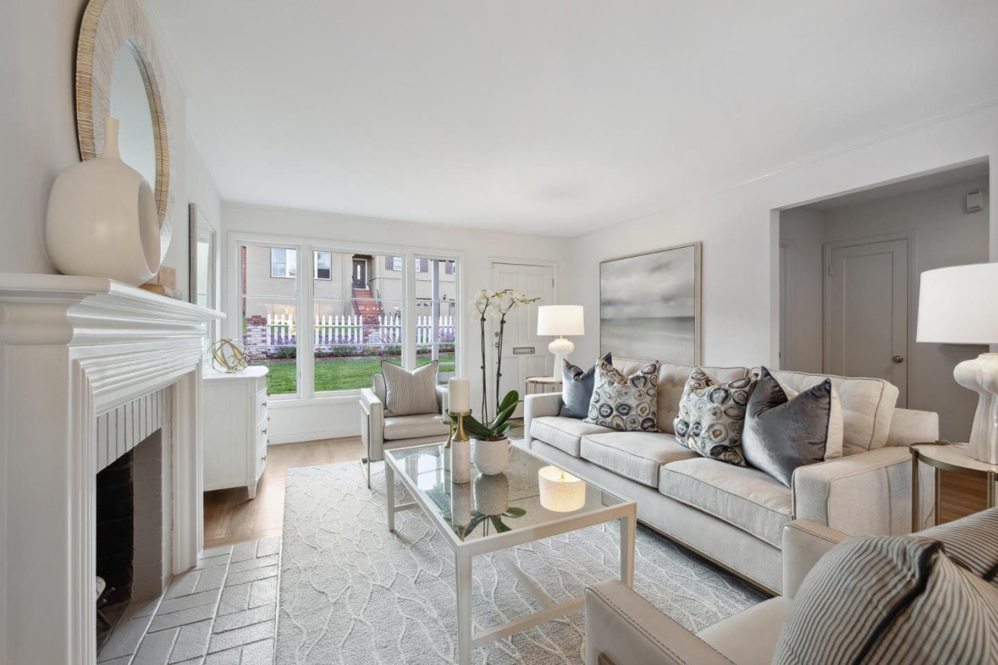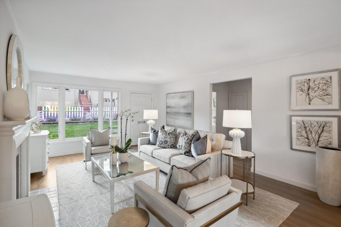 On a gentle hillside in The City of Good Living is a delightful mid-century home with a 1,500+/- sq. ft. single-level floor plan. The light-filled residence features an updated kitchen, refinished hardwood floors, large windows, new light fixtures, a freshly painted interior and exterior and new front and back yard landscaping. The sweet layout includes a living room with fireplace, an on-trend kitchen with new cabinets, quartz counters, subway tile backsplashes, stainless steel appliances and an adjoining dining area and family room with sliding glass door to the back deck and yard, and a privately situated primary bedroom with two closets, an en suite bathroom and a view of the back yard and neighboring hillside. Outside, the lush front lawn is trimmed with floral gardens and brick, while the large terraced back yard has new and established plantings, room to play and privacy for outdoor enjoyment. Ideally located near top-rated schools, Downtown San Carlos, parks and conveniences.