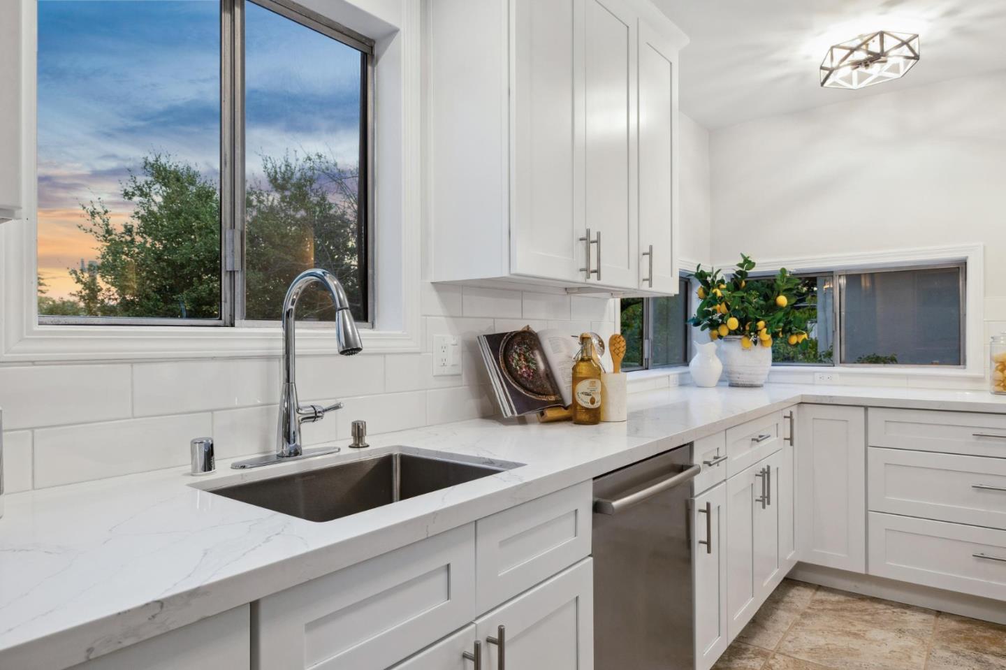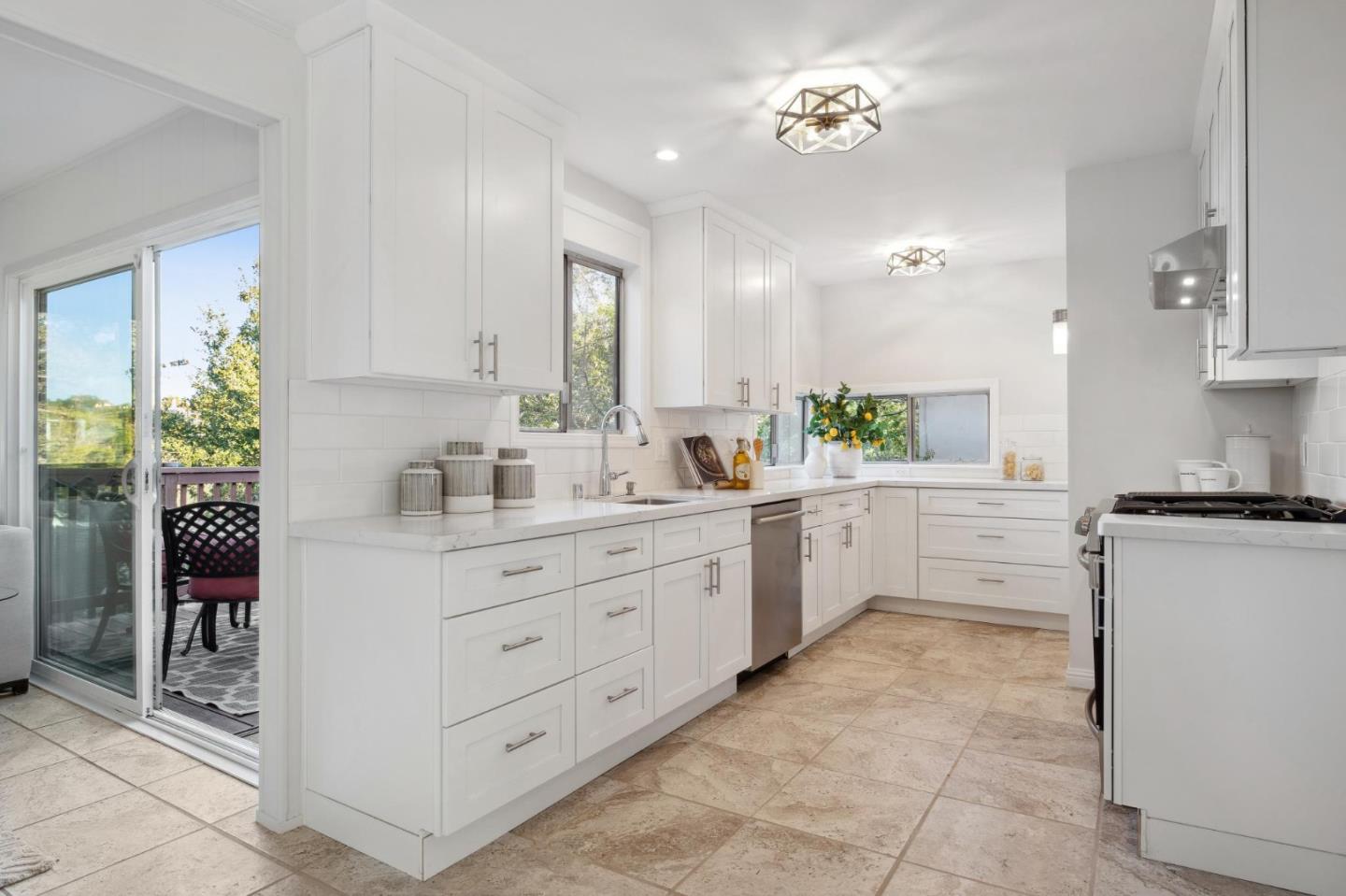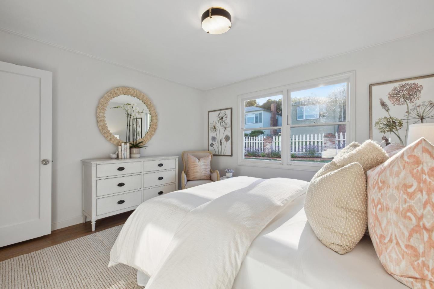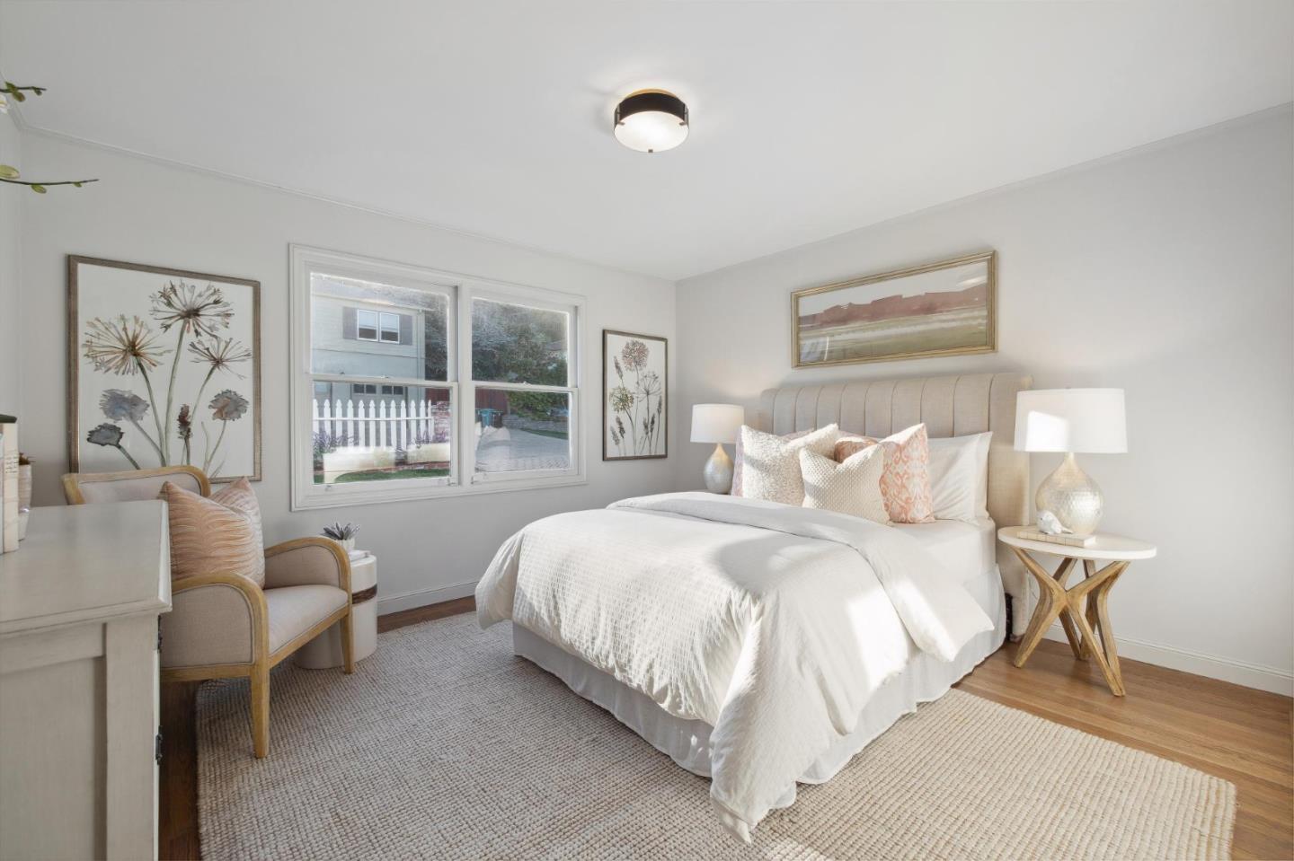 On a gentle hillside in The City of Good Living is a delightful mid-century home with a 1,500+/- sq. ft. single-level floor plan. The light-filled residence features an updated kitchen, refinished hardwood floors, large windows, new light fixtures, a freshly painted interior and exterior and new front and back yard landscaping. The sweet layout includes a living room with fireplace, an on-trend kitchen with new cabinets, quartz counters, subway tile backsplashes, stainless steel appliances and an adjoining dining area and family room with sliding glass door to the back deck and yard, and a privately situated primary bedroom with two closets, an en suite bathroom and a view of the back yard and neighboring hillside. Outside, the lush front lawn is trimmed with floral gardens and brick, while the large terraced back yard has new and established plantings, room to play and privacy for outdoor enjoyment. Ideally located near top-rated schools, Downtown San Carlos, parks and conveniences.