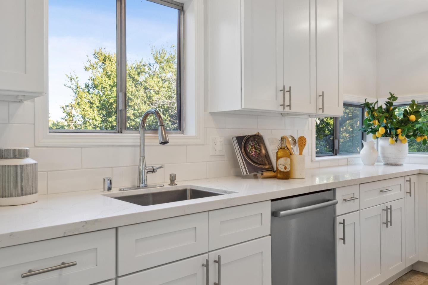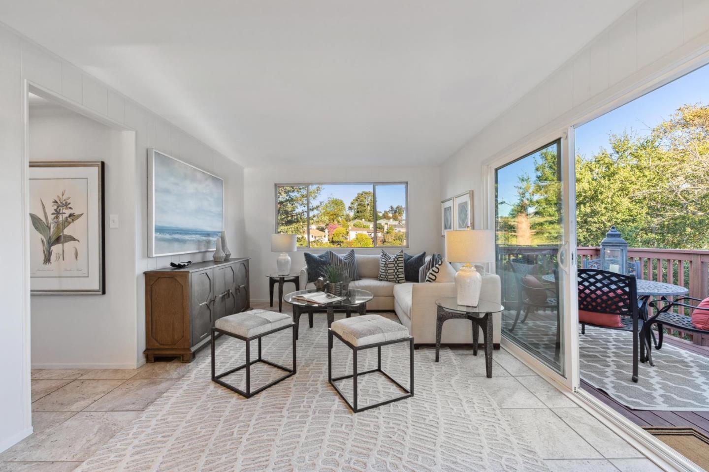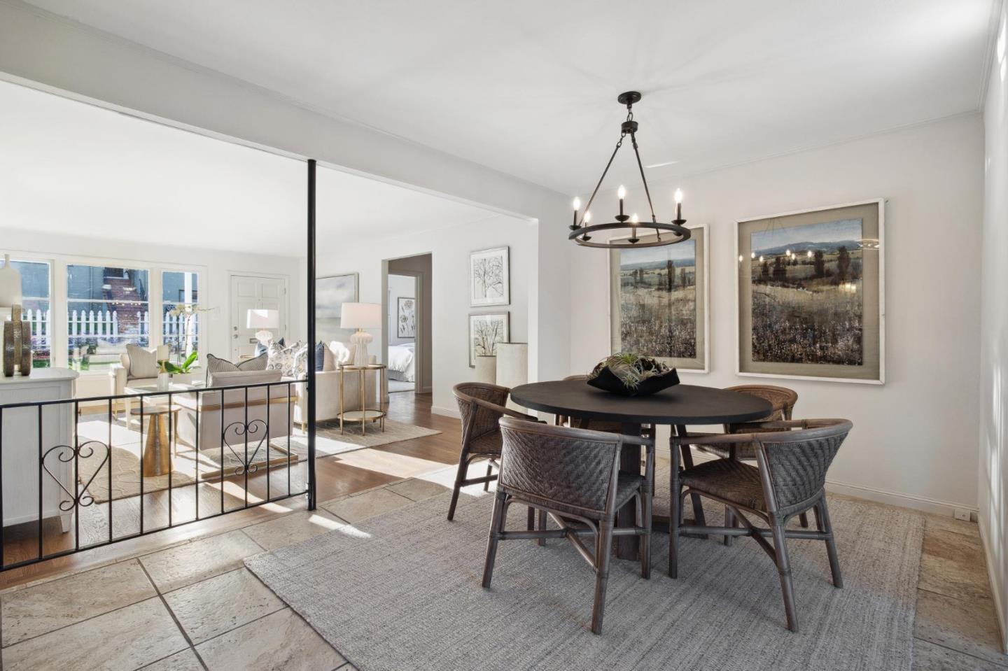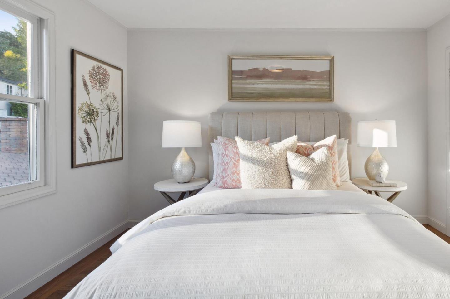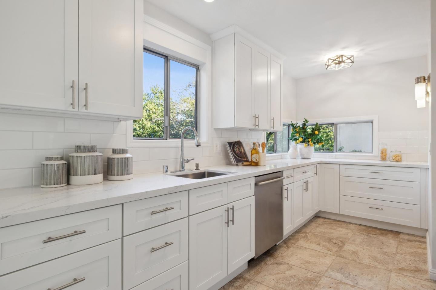 On a gentle hillside in The City of Good Living is a delightful mid-century home with a 1,500+/- sq. ft. single-level floor plan. The light-filled residence features an updated kitchen, refinished hardwood floors, large windows, new light fixtures, a freshly painted interior and exterior and new front and back yard landscaping. The sweet layout includes a living room with fireplace, an on-trend kitchen with new cabinets, quartz counters, subway tile backsplashes, stainless steel appliances and an adjoining dining area and family room with sliding glass door to the back deck and yard, and a privately situated primary bedroom with two closets, an en suite bathroom and a view of the back yard and neighboring hillside. Outside, the lush front lawn is trimmed with floral gardens and brick, while the large terraced back yard has new and established plantings, room to play and privacy for outdoor enjoyment. Ideally located near top-rated schools, Downtown San Carlos, parks and conveniences.