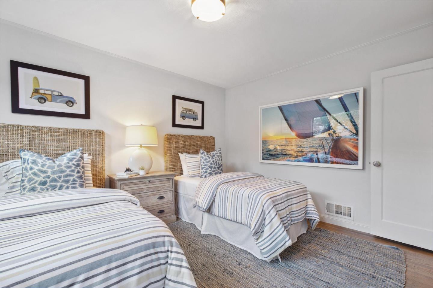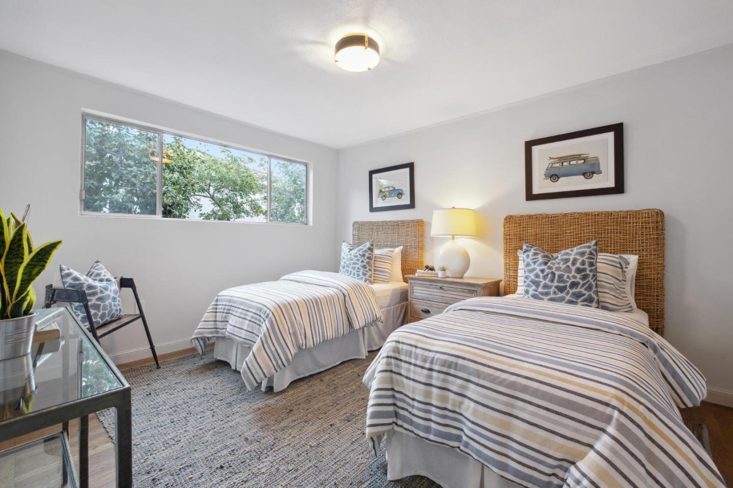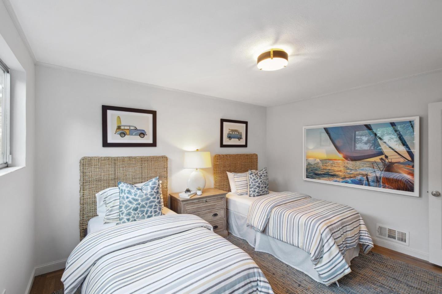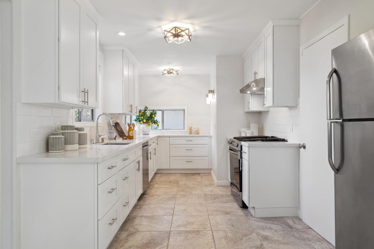 On a gentle hillside in The City of Good Living is a delightful mid-century home with a 1,500+/- sq. ft. single-level floor plan. The light-filled residence features an updated kitchen, refinished hardwood floors, large windows, new light fixtures, a freshly painted interior and exterior and new front and back yard landscaping. The sweet layout includes a living room with fireplace, an on-trend kitchen with new cabinets, quartz counters, subway tile backsplashes, stainless steel appliances and an adjoining dining area and family room with sliding glass door to the back deck and yard, and a privately situated primary bedroom with two closets, an en suite bathroom and a view of the back yard and neighboring hillside. Outside, the lush front lawn is trimmed with floral gardens and brick, while the large terraced back yard has new and established plantings, room to play and privacy for outdoor enjoyment. Ideally located near top-rated schools, Downtown San Carlos, parks and conveniences.