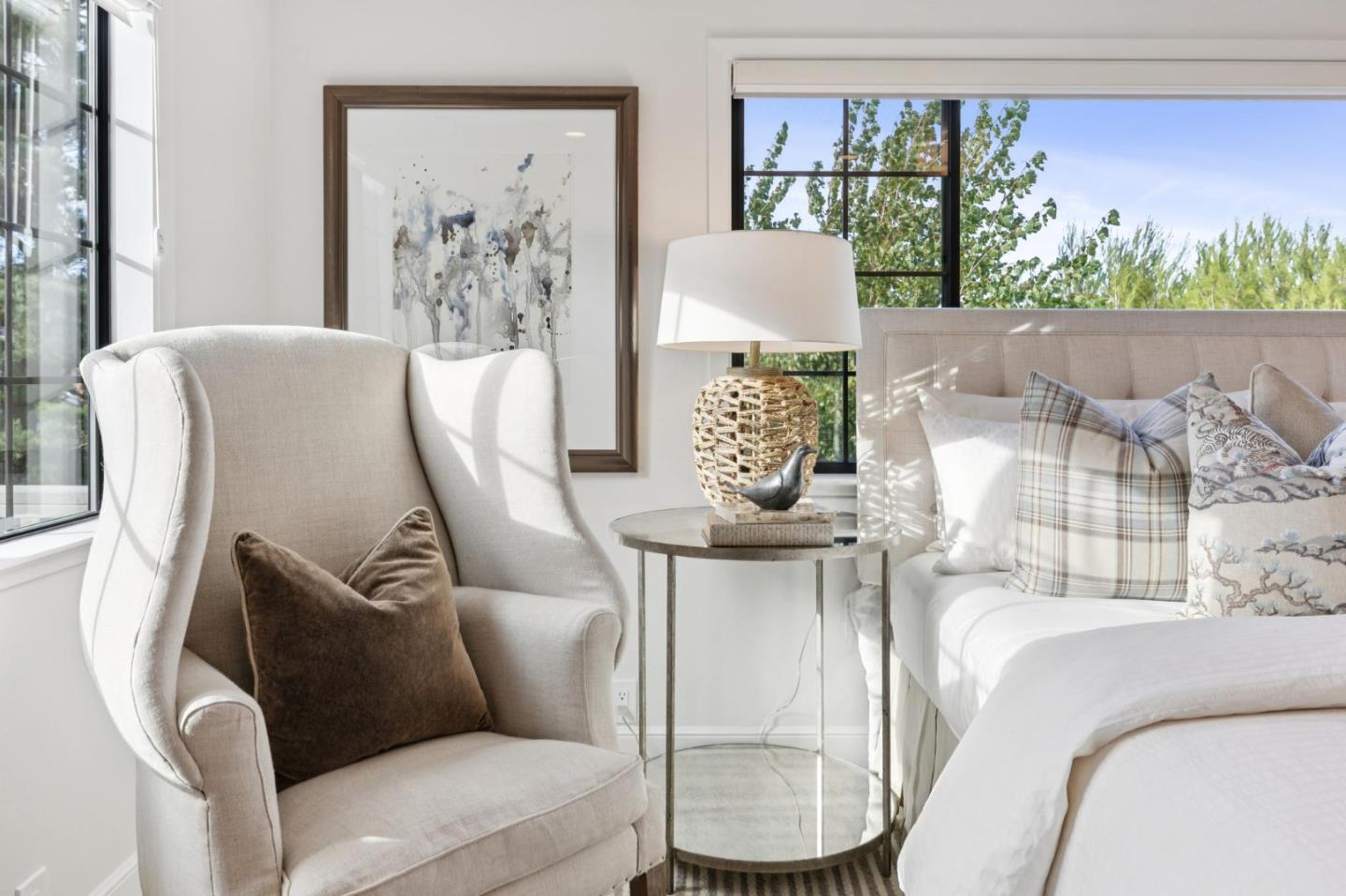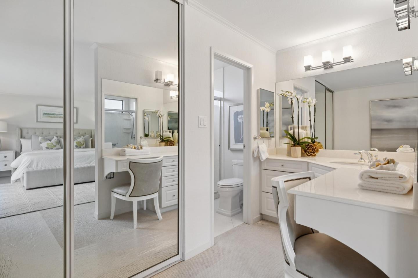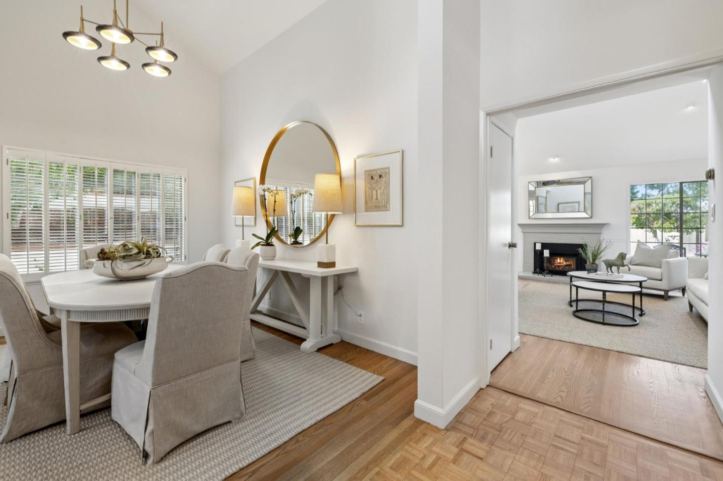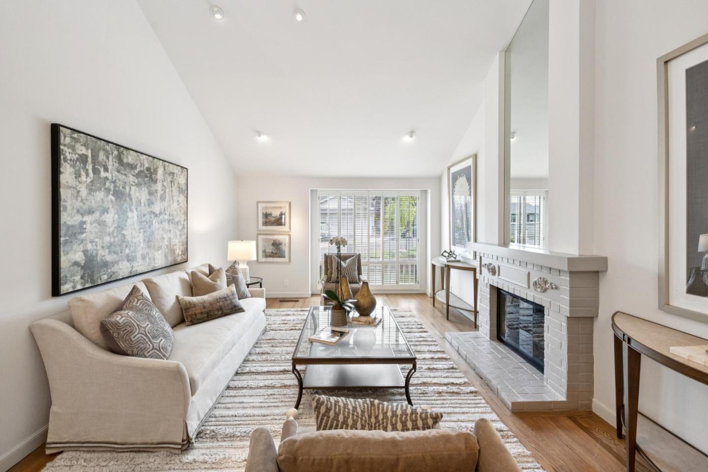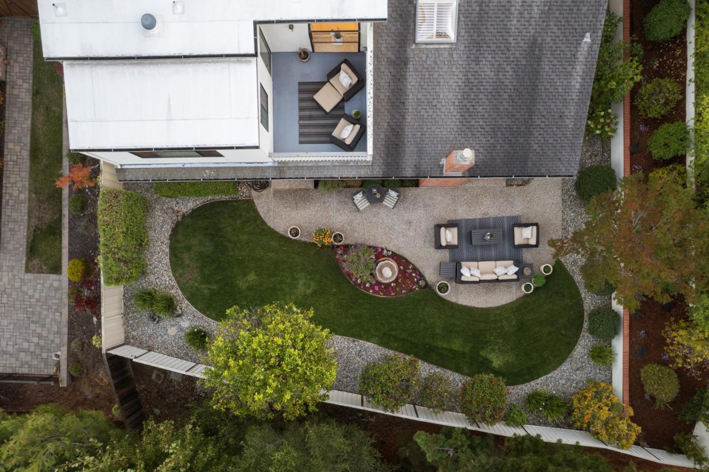 On a tranquil cul-de-sac near Laurelwood Park is a family-friendly home ready for the next generation. From the curb, the home is traditional in style with neatly manicured trees, shrubs and emerald lawn, and red brick detailing that carries to the facade and front porch. Inside, the drama begins. The front door opens to a two-story foyer that astounds with sweeping hardwood floors, soaring vaulted ceilings, skylights and spacious rooms with generous windows, boasting 2,960+/- sf of interior living space. A greeting room with wet bar, grand living room with stately fireplace and elegant dining room set the stage for formal entertaining, while the great room is ideal for laid-back gatherings, with the family room, kitchen and breakfast area opening to the backyard patio for yet another entertaining venue. For quiet retreat, three of four bedrooms are on the first floor, including Suite 2 with backyard access. Suite 1 occupies the entire upstairs. While both have walk-in closets and ensuite baths, Suite 1 has an office, a sitting room, fireplace, kitchenette, private study and terrace overlooking the flourishing backyard landscape with sculpted patio.