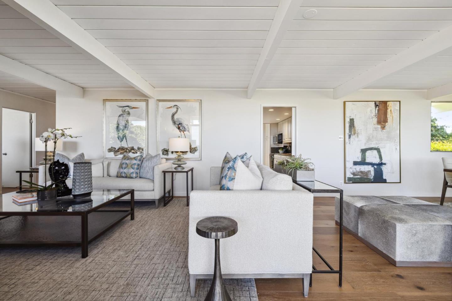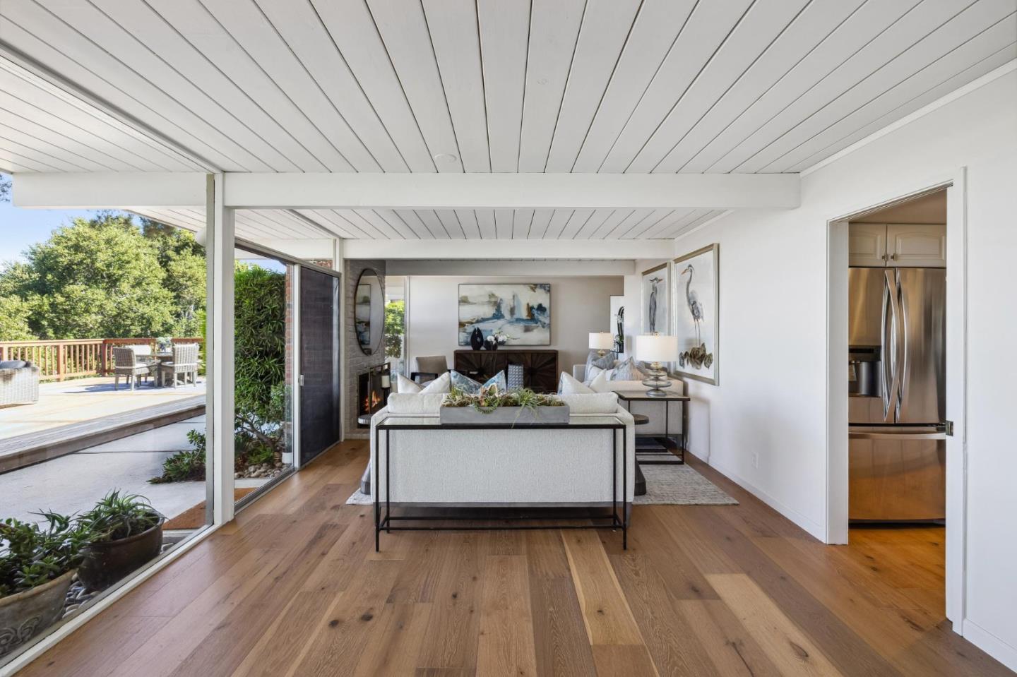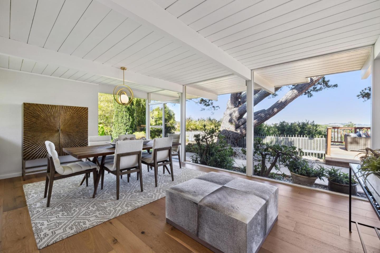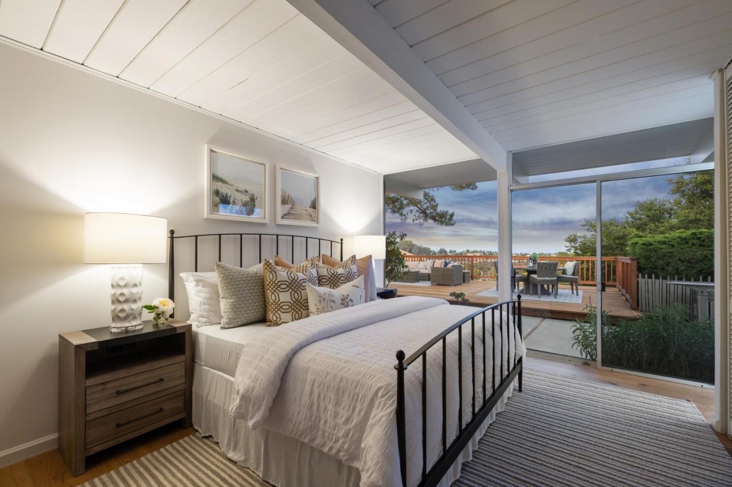 Enjoy epic views from this hilltop Eichler home in the Highlands neighborhood of San Mateo. On a .294+/-acre lot, this classic is true to form with clean lines, abundant light from walls of windows and sliding glass doors, wood plank ceilings with exposed beams, skylights and a fireplace flanked by glass walls. New engineered white oak floors, light fixtures and paint, inside and out, were recently added. Stylish and dramatic, the adventure begins at the front door with a glimpse of vistas ahead. Stunning views from the living room, open dining room and primary suite will stop you in your tracks with awe. Stepping outside to the backyard deck with 180-degree views will take your breath away. Outdoor enjoyment continues from the granite-finished kitchen with a dining area that opens to the intimate front patio and manicured yard, and a second bedroom with side yard access. This home is all about indoor-outdoor living. Enjoy coming home to a private haven with priceless views!