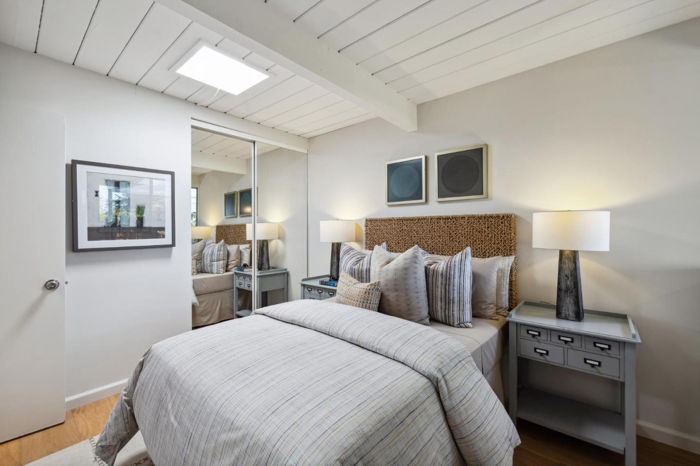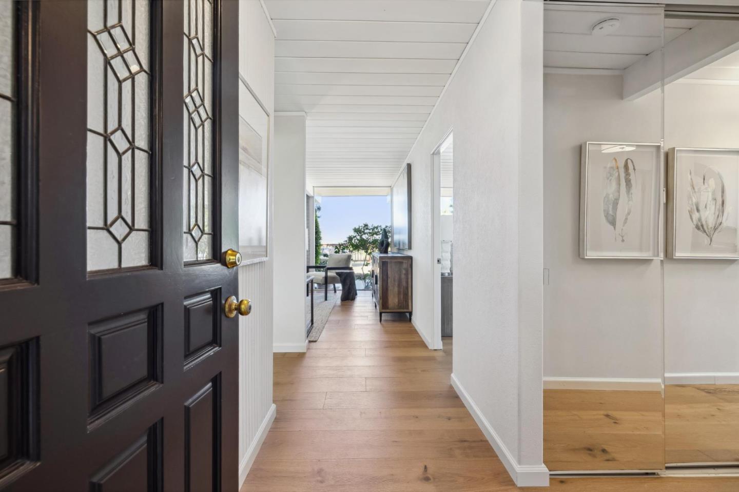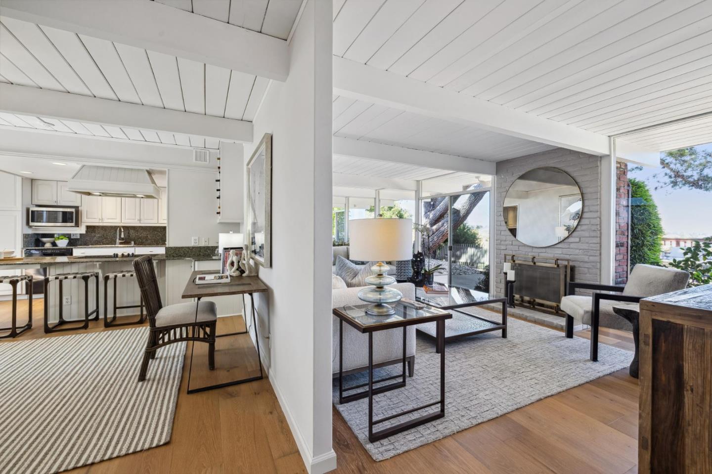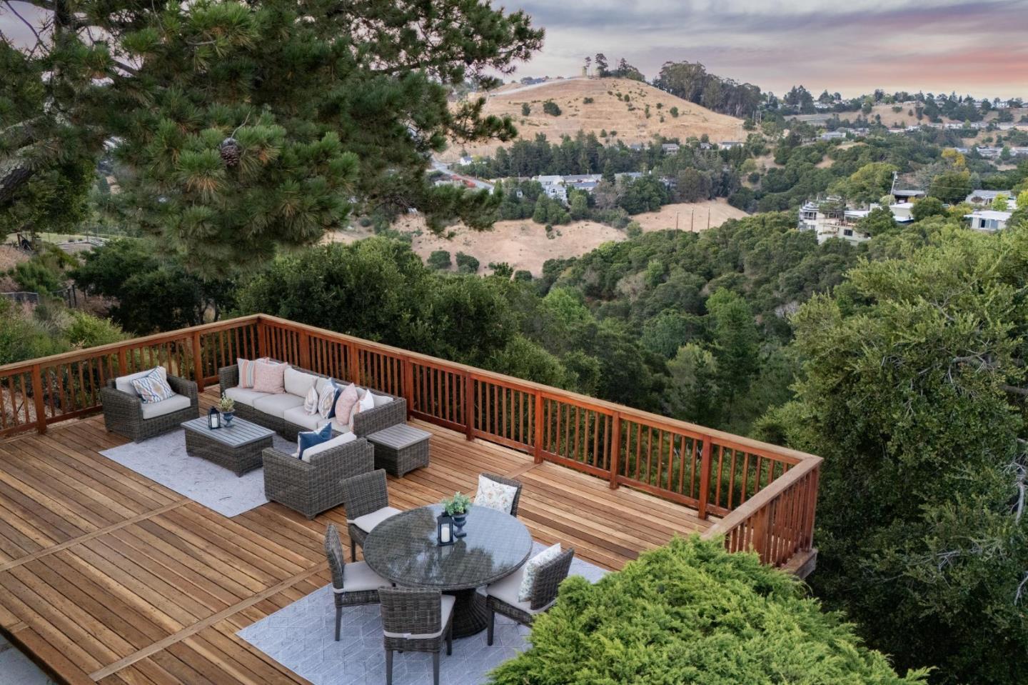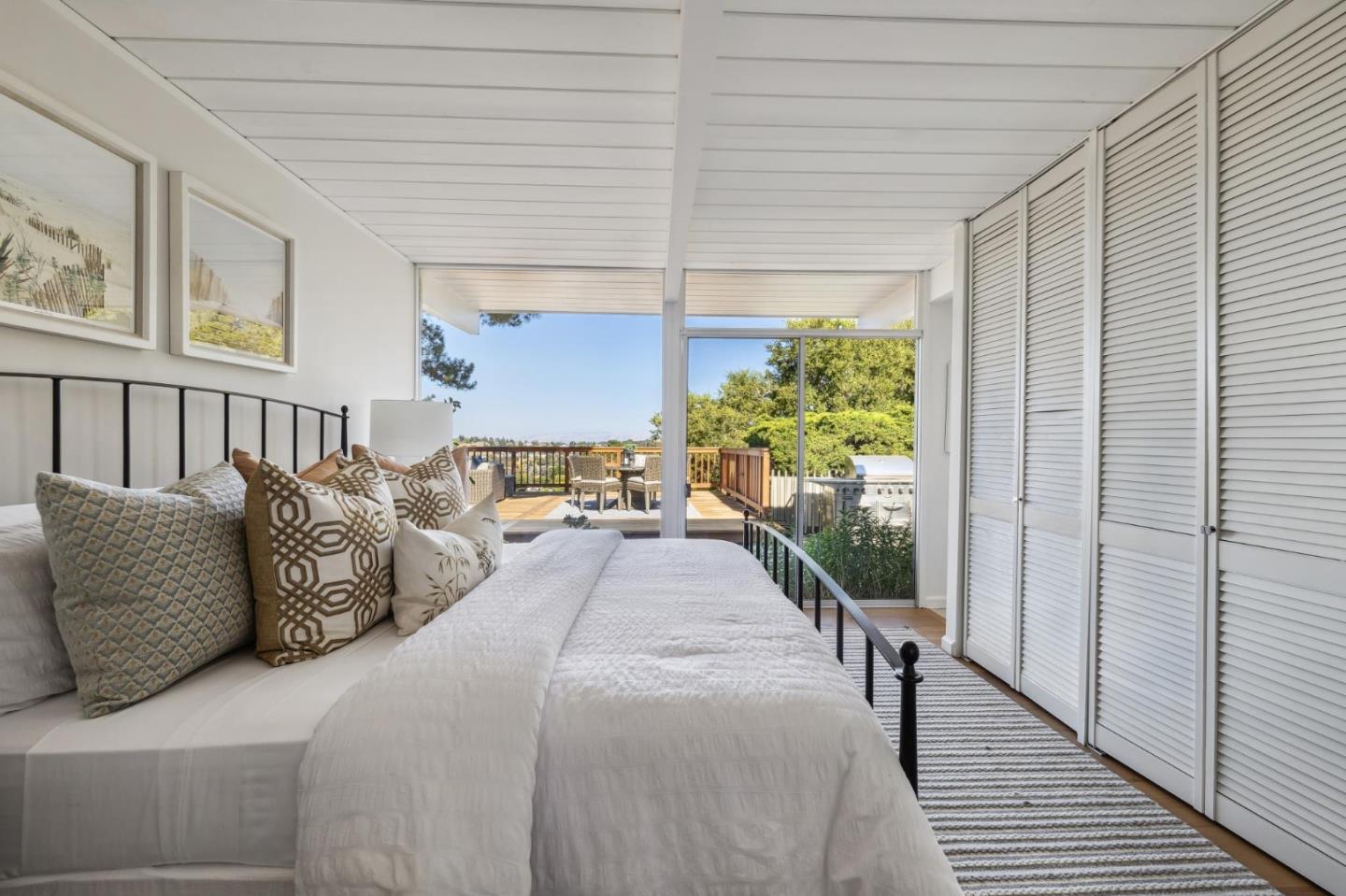 Enjoy epic views from this hilltop Eichler home in the Highlands neighborhood of San Mateo. On a .294+/-acre lot, this classic is true to form with clean lines, abundant light from walls of windows and sliding glass doors, wood plank ceilings with exposed beams, skylights and a fireplace flanked by glass walls. New engineered white oak floors, light fixtures and paint, inside and out, were recently added. Stylish and dramatic, the adventure begins at the front door with a glimpse of vistas ahead. Stunning views from the living room, open dining room and primary suite will stop you in your tracks with awe. Stepping outside to the backyard deck with 180-degree views will take your breath away. Outdoor enjoyment continues from the granite-finished kitchen with a dining area that opens to the intimate front patio and manicured yard, and a second bedroom with side yard access. This home is all about indoor-outdoor living. Enjoy coming home to a private haven with priceless views!