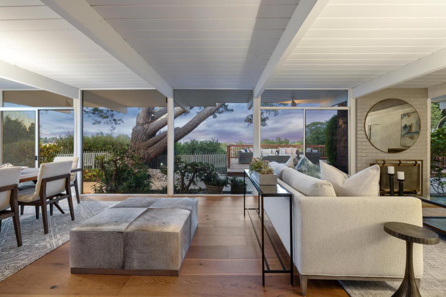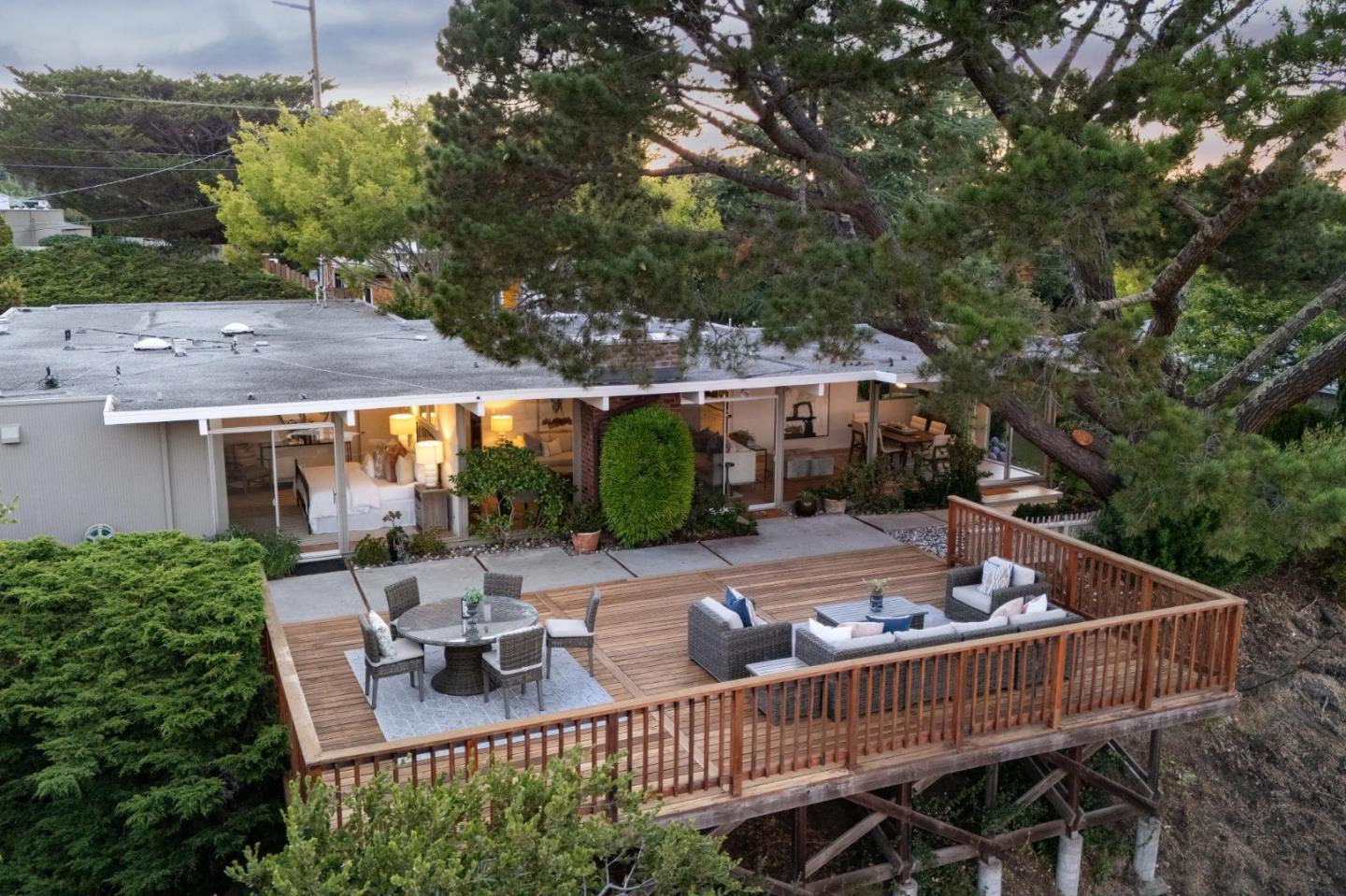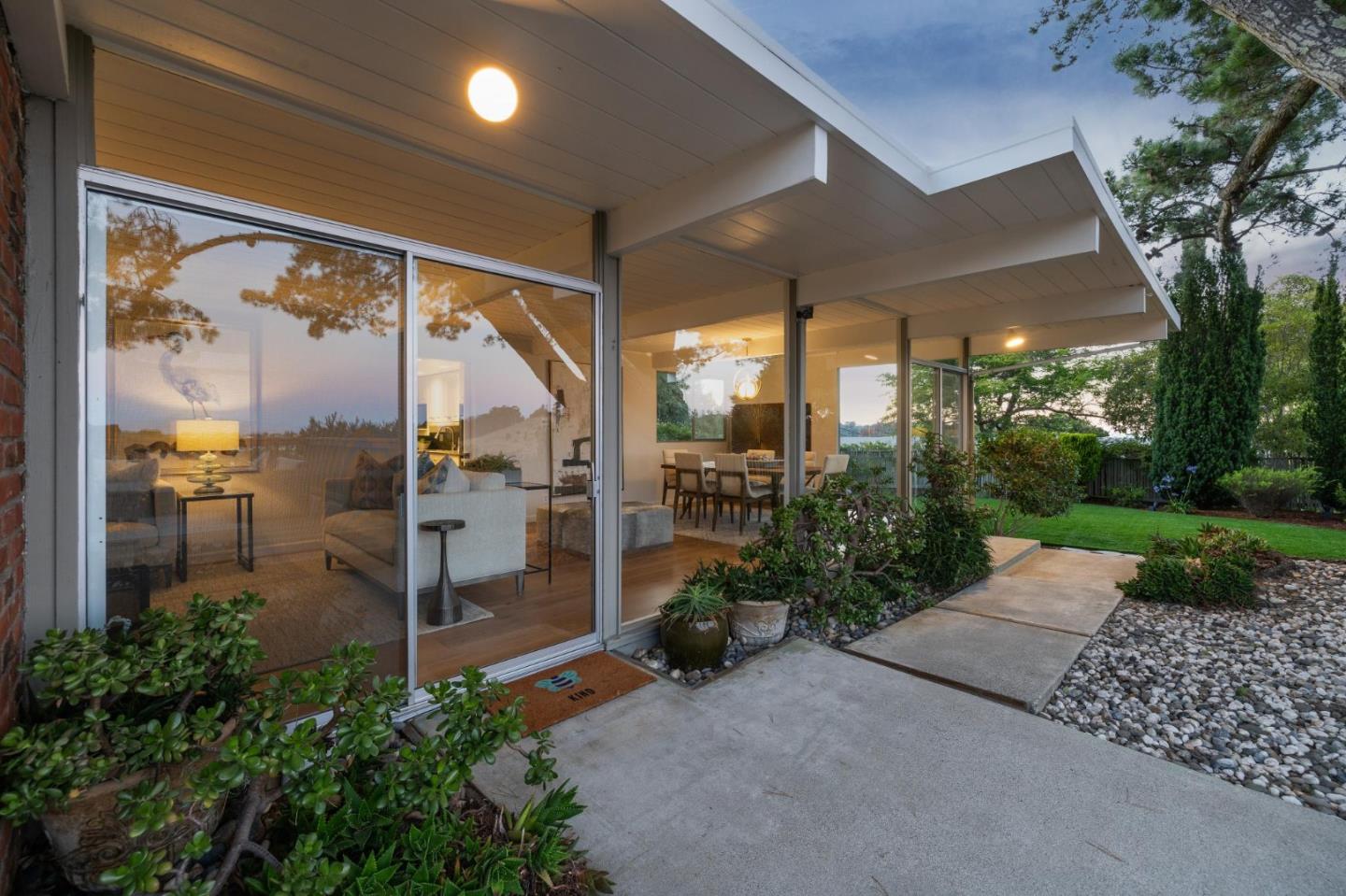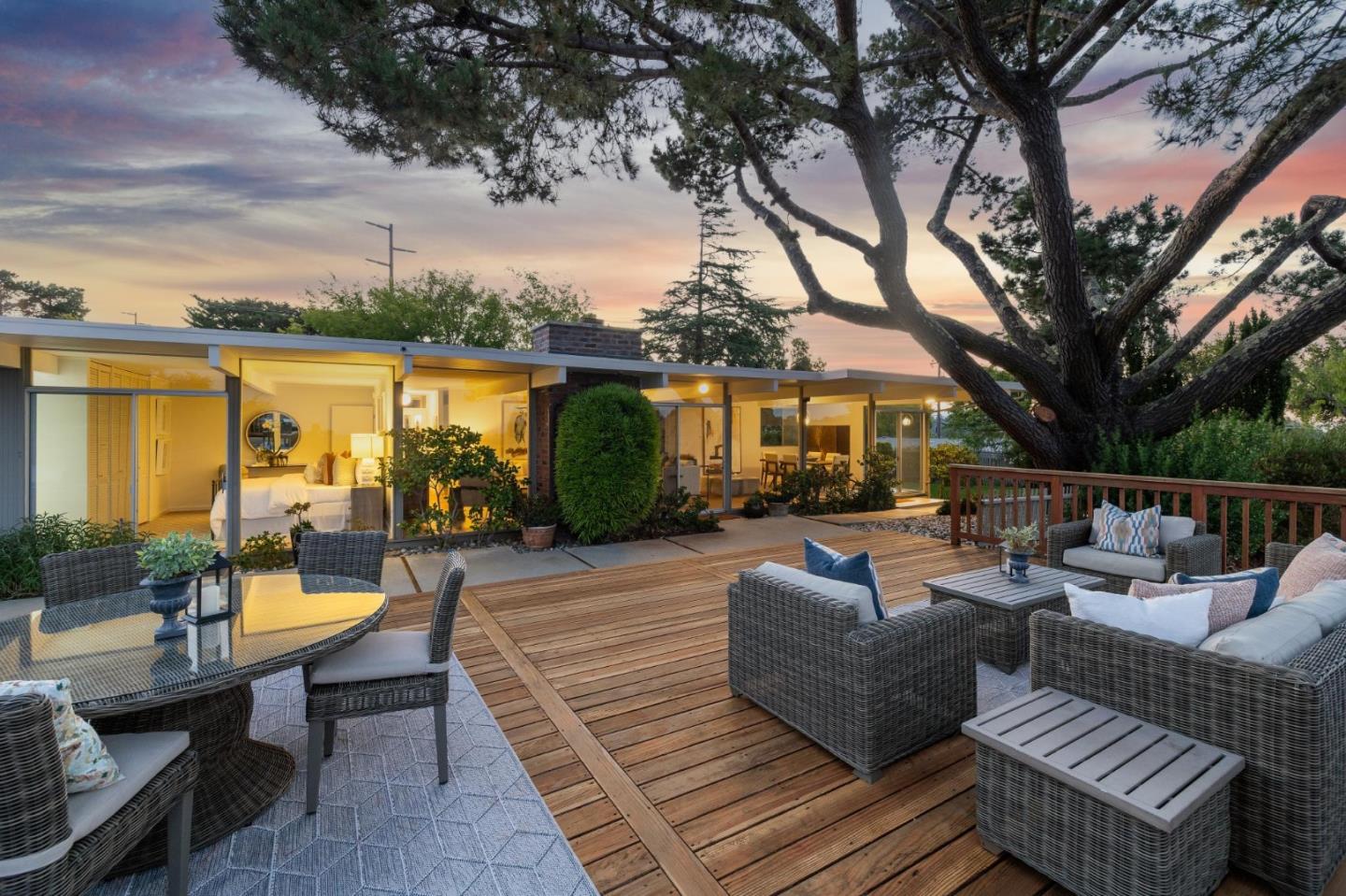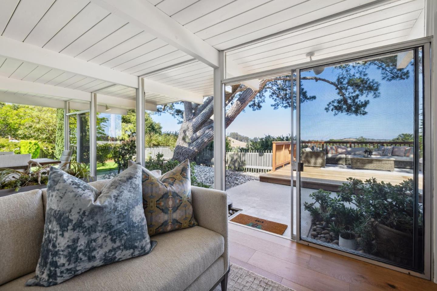 Enjoy epic views from this hilltop Eichler home in the Highlands neighborhood of San Mateo. On a .294+/-acre lot, this classic is true to form with clean lines, abundant light from walls of windows and sliding glass doors, wood plank ceilings with exposed beams, skylights and a fireplace flanked by glass walls. New engineered white oak floors, light fixtures and paint, inside and out, were recently added. Stylish and dramatic, the adventure begins at the front door with a glimpse of vistas ahead. Stunning views from the living room, open dining room and primary suite will stop you in your tracks with awe. Stepping outside to the backyard deck with 180-degree views will take your breath away. Outdoor enjoyment continues from the granite-finished kitchen with a dining area that opens to the intimate front patio and manicured yard, and a second bedroom with side yard access. This home is all about indoor-outdoor living. Enjoy coming home to a private haven with priceless views!