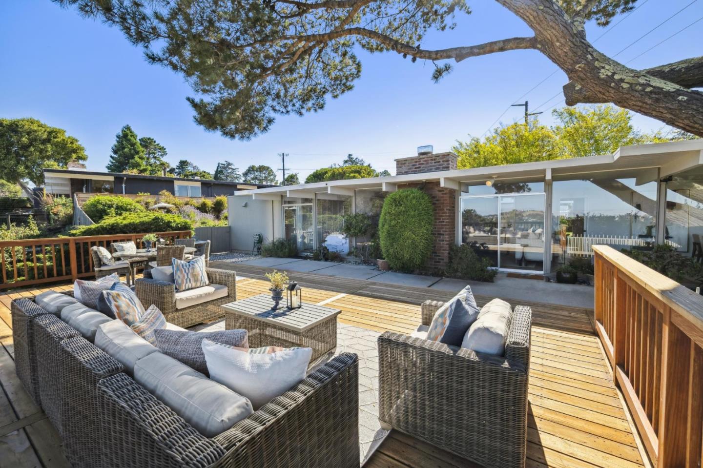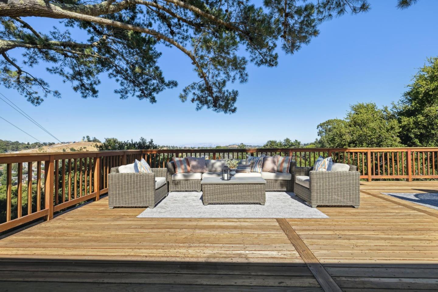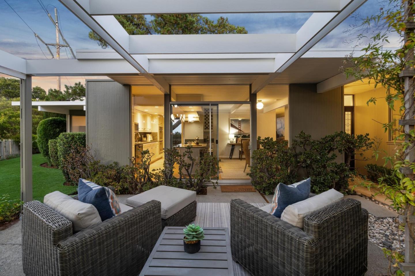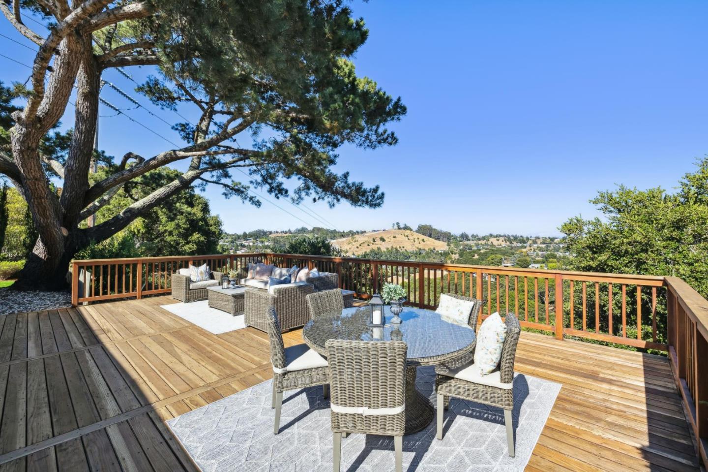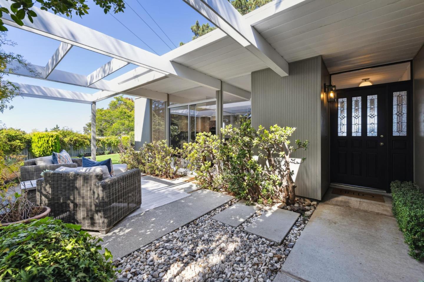 Enjoy epic views from this hilltop Eichler home in the Highlands neighborhood of San Mateo. On a .294+/-acre lot, this classic is true to form with clean lines, abundant light from walls of windows and sliding glass doors, wood plank ceilings with exposed beams, skylights and a fireplace flanked by glass walls. New engineered white oak floors, light fixtures and paint, inside and out, were recently added. Stylish and dramatic, the adventure begins at the front door with a glimpse of vistas ahead. Stunning views from the living room, open dining room and primary suite will stop you in your tracks with awe. Stepping outside to the backyard deck with 180-degree views will take your breath away. Outdoor enjoyment continues from the granite-finished kitchen with a dining area that opens to the intimate front patio and manicured yard, and a second bedroom with side yard access. This home is all about indoor-outdoor living. Enjoy coming home to a private haven with priceless views!