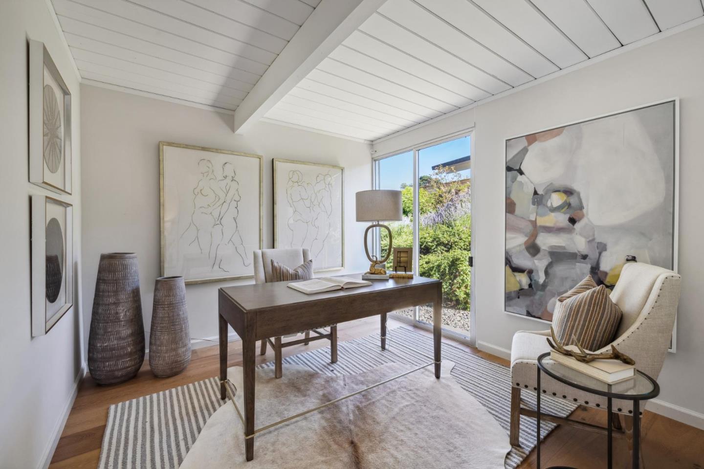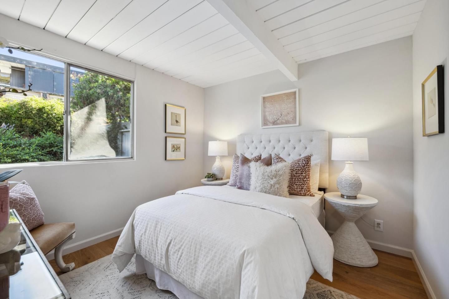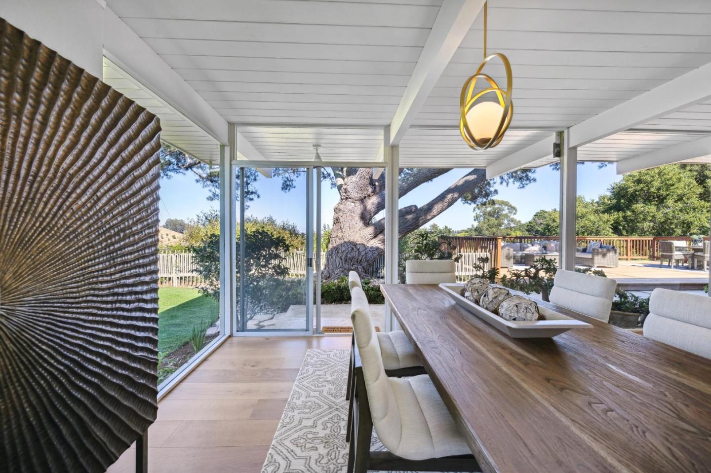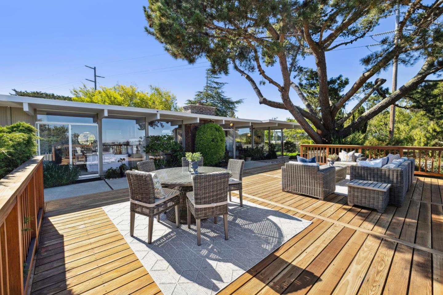 Enjoy epic views from this hilltop Eichler home in the Highlands neighborhood of San Mateo. On a .294+/-acre lot, this classic is true to form with clean lines, abundant light from walls of windows and sliding glass doors, wood plank ceilings with exposed beams, skylights and a fireplace flanked by glass walls. New engineered white oak floors, light fixtures and paint, inside and out, were recently added. Stylish and dramatic, the adventure begins at the front door with a glimpse of vistas ahead. Stunning views from the living room, open dining room and primary suite will stop you in your tracks with awe. Stepping outside to the backyard deck with 180-degree views will take your breath away. Outdoor enjoyment continues from the granite-finished kitchen with a dining area that opens to the intimate front patio and manicured yard, and a second bedroom with side yard access. This home is all about indoor-outdoor living. Enjoy coming home to a private haven with priceless views!