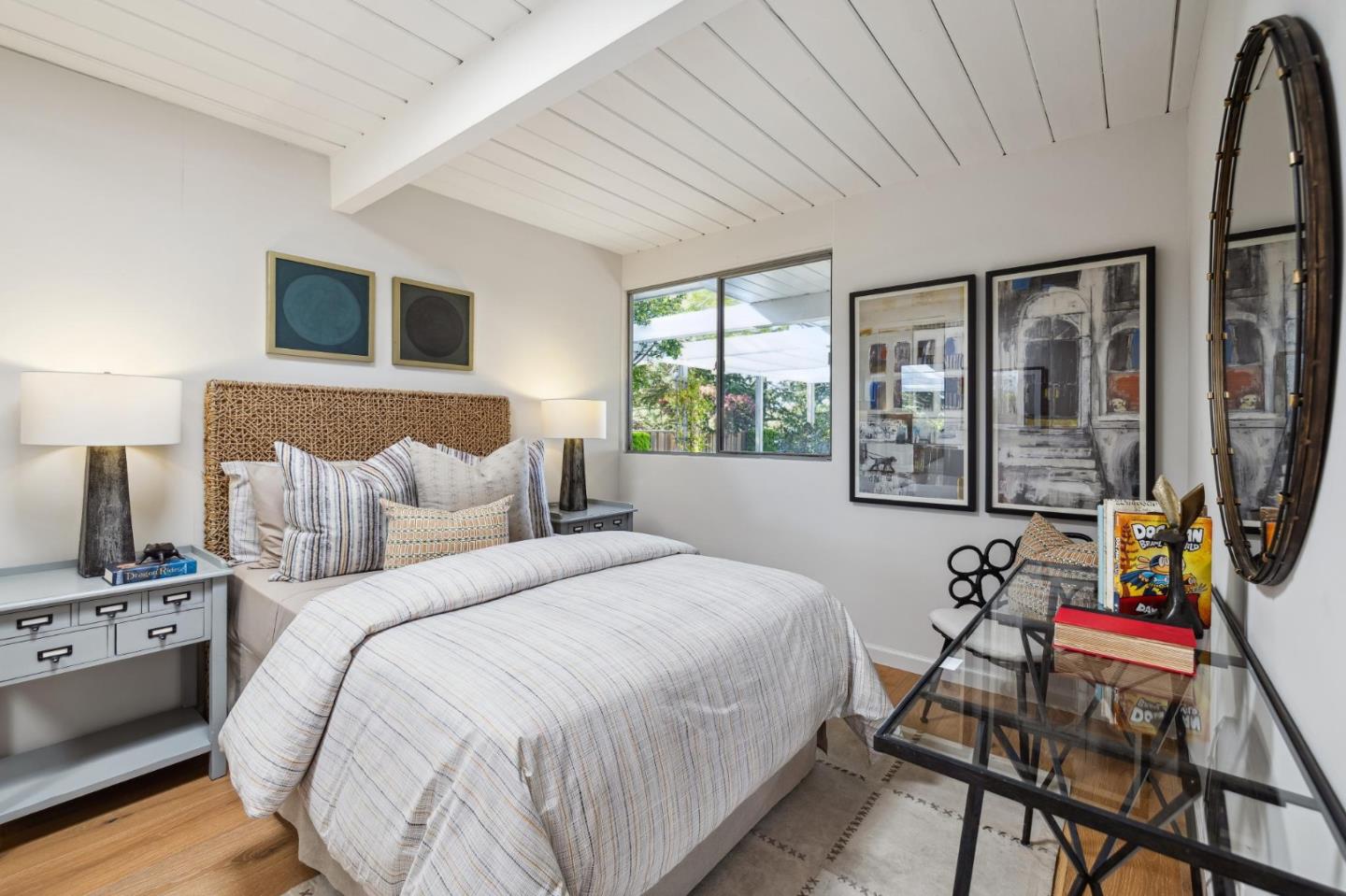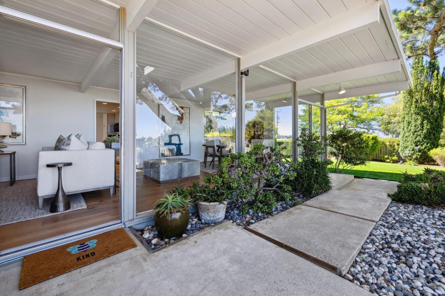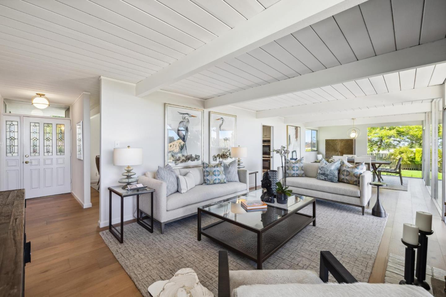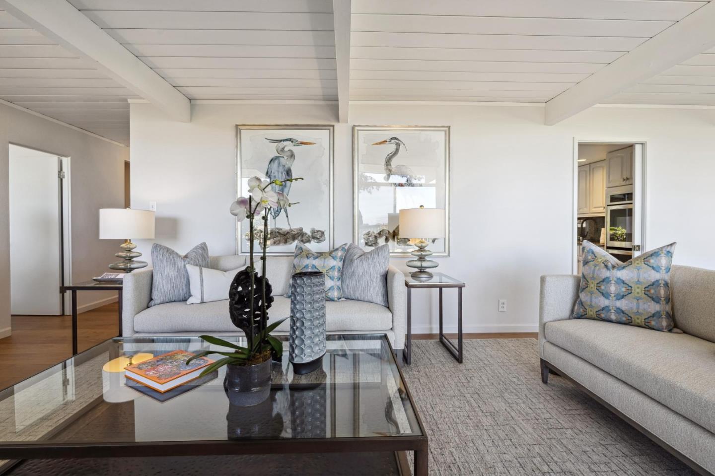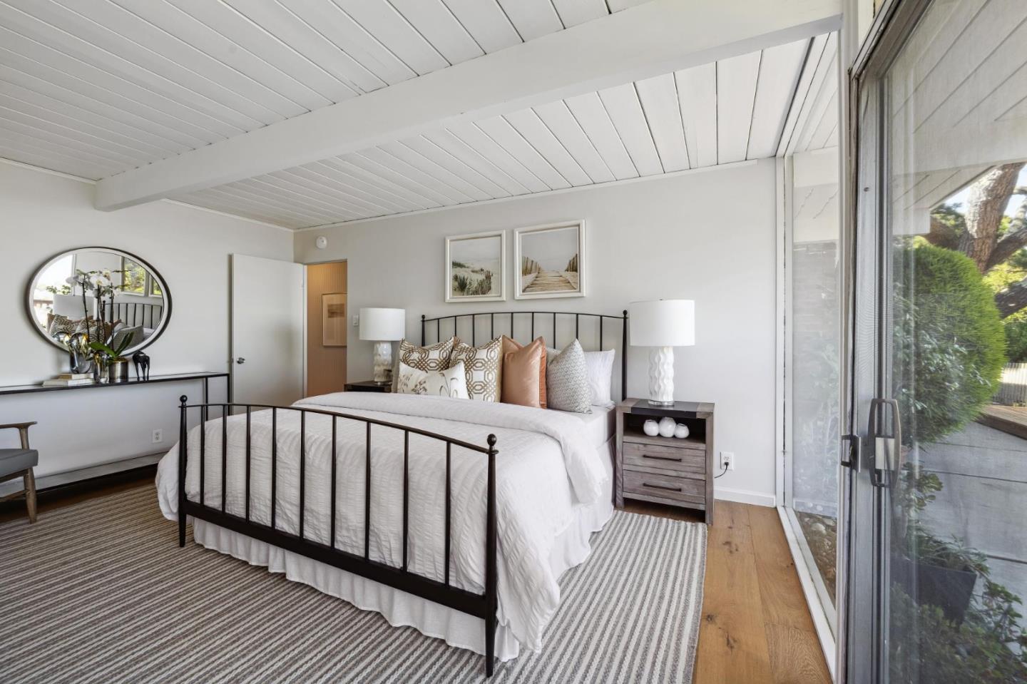 Enjoy epic views from this hilltop Eichler home in the Highlands neighborhood of San Mateo. On a .294+/-acre lot, this classic is true to form with clean lines, abundant light from walls of windows and sliding glass doors, wood plank ceilings with exposed beams, skylights and a fireplace flanked by glass walls. New engineered white oak floors, light fixtures and paint, inside and out, were recently added. Stylish and dramatic, the adventure begins at the front door with a glimpse of vistas ahead. Stunning views from the living room, open dining room and primary suite will stop you in your tracks with awe. Stepping outside to the backyard deck with 180-degree views will take your breath away. Outdoor enjoyment continues from the granite-finished kitchen with a dining area that opens to the intimate front patio and manicured yard, and a second bedroom with side yard access. This home is all about indoor-outdoor living. Enjoy coming home to a private haven with priceless views!