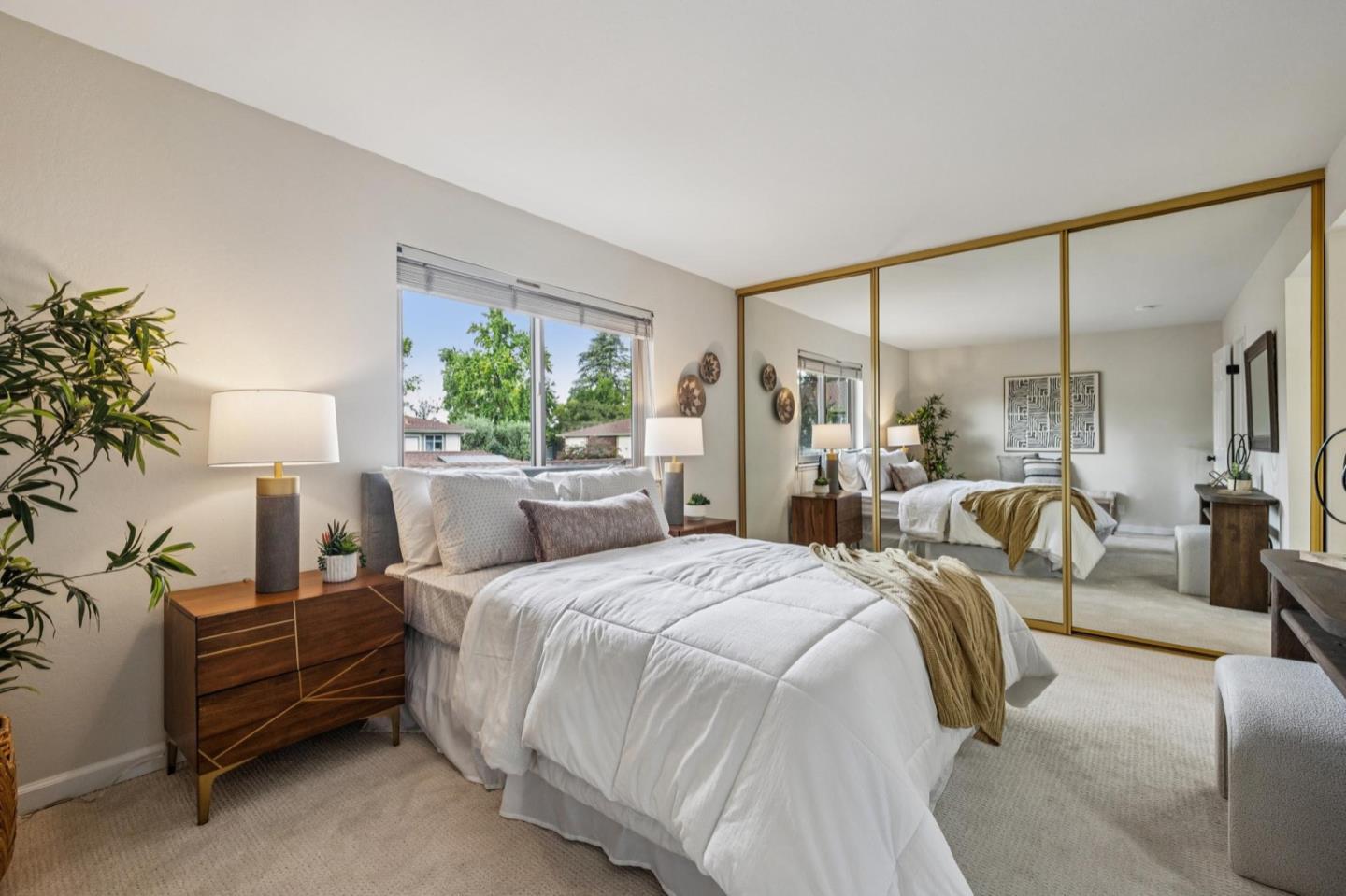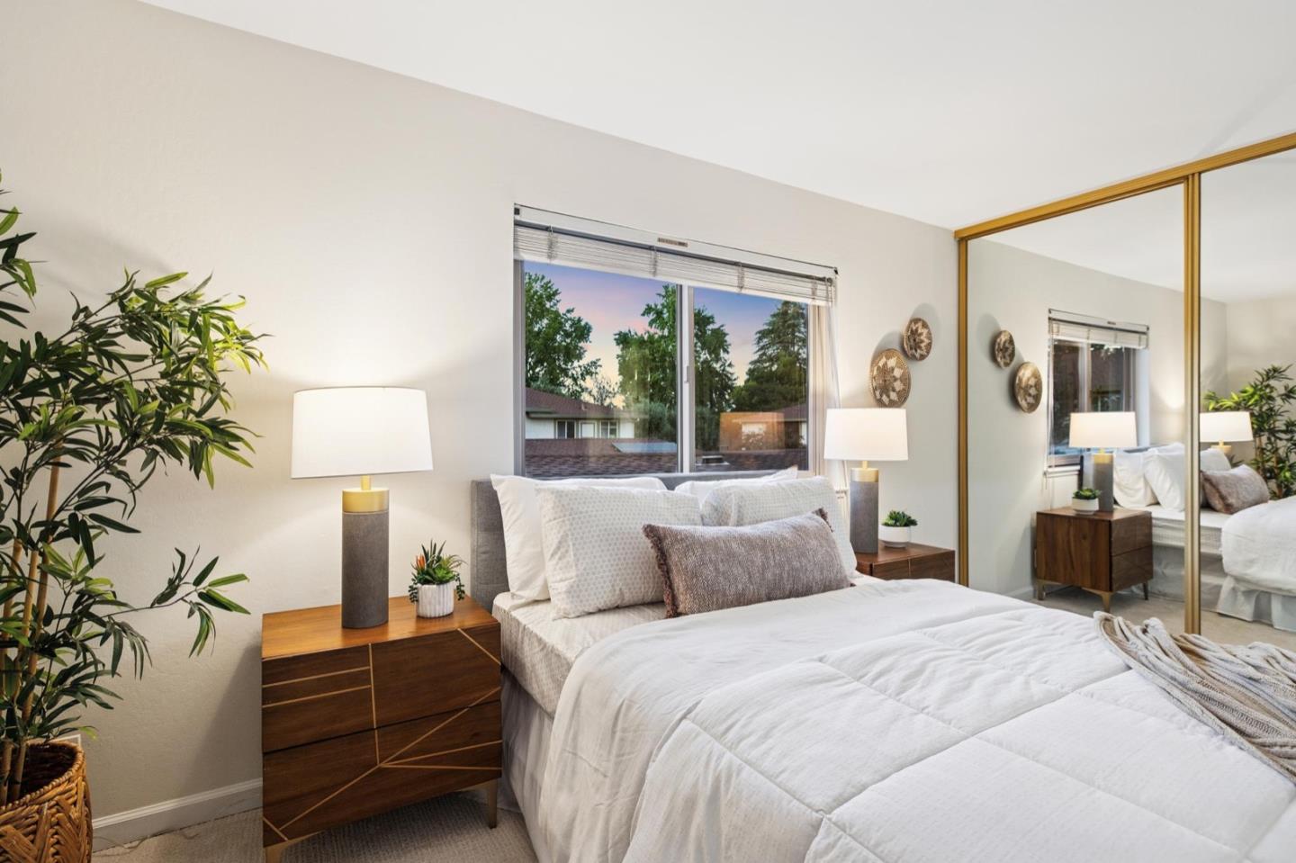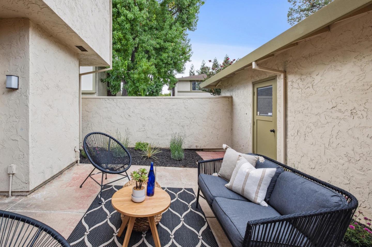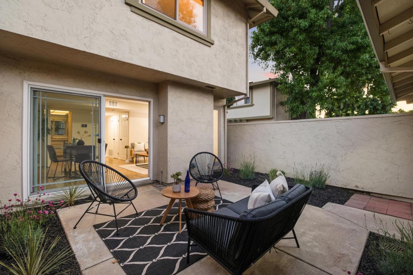PRIME SILICON VALLEY LOCATION near hundreds of tech and Fortune 500 companies. Central to it all is a charming 2BD, 2.5BA, end-unit townhouse condominium across from a lush greenbelt quad with sparkling swimming pool and manicured landscape. Featuring a freshly painted interior, refinished hardwood floors, new wood laminate flooring on ascending stairs and upper-level landing, and new carpeting in bedrooms. The foyer extends to a granite-finished kitchen with all appliances, and a living/dining room that opens to a private, freshly landscaped courtyard. Upstairs are two bedrooms including the suite with a mirrored closet and open vanity/dressing room. In-house laundry with a full-size washer and dryer and two-car garage (accessed from the courtyard), add to the appeal. For convenience and leisure ease, the home is near vibrant Downtown Campbell, Los Gatos Creek Trail, The Pruneyard, Whole Foods, Trader Joes, Safeway, and Highway 17.