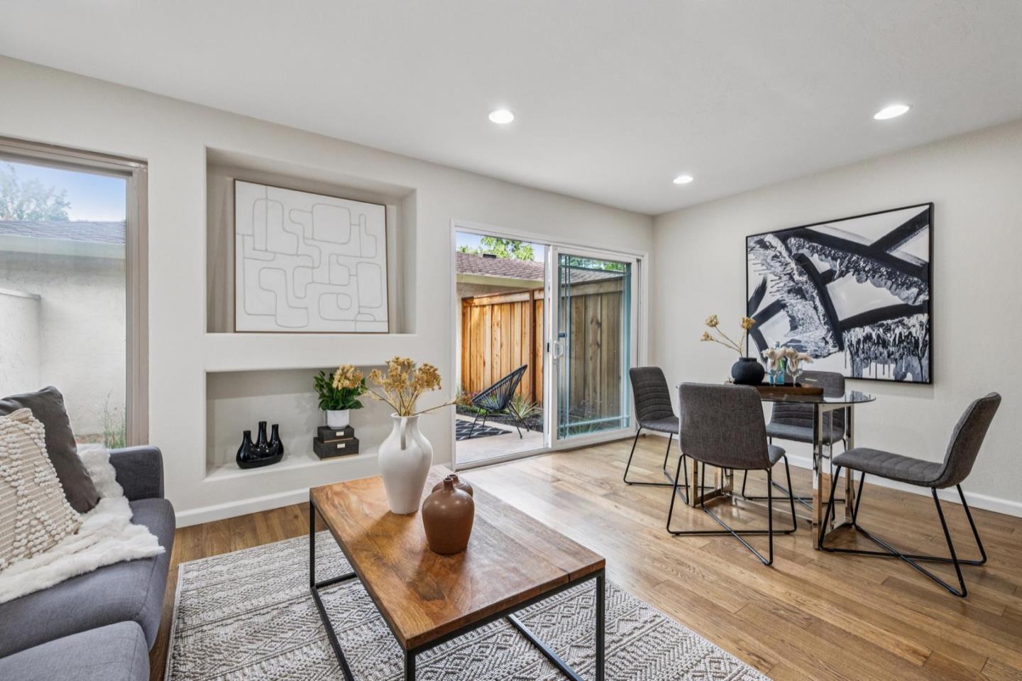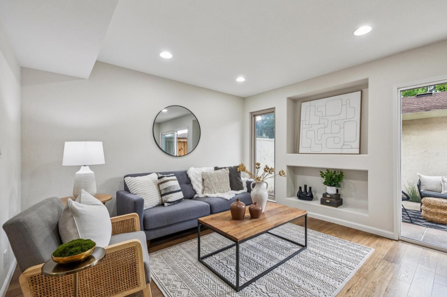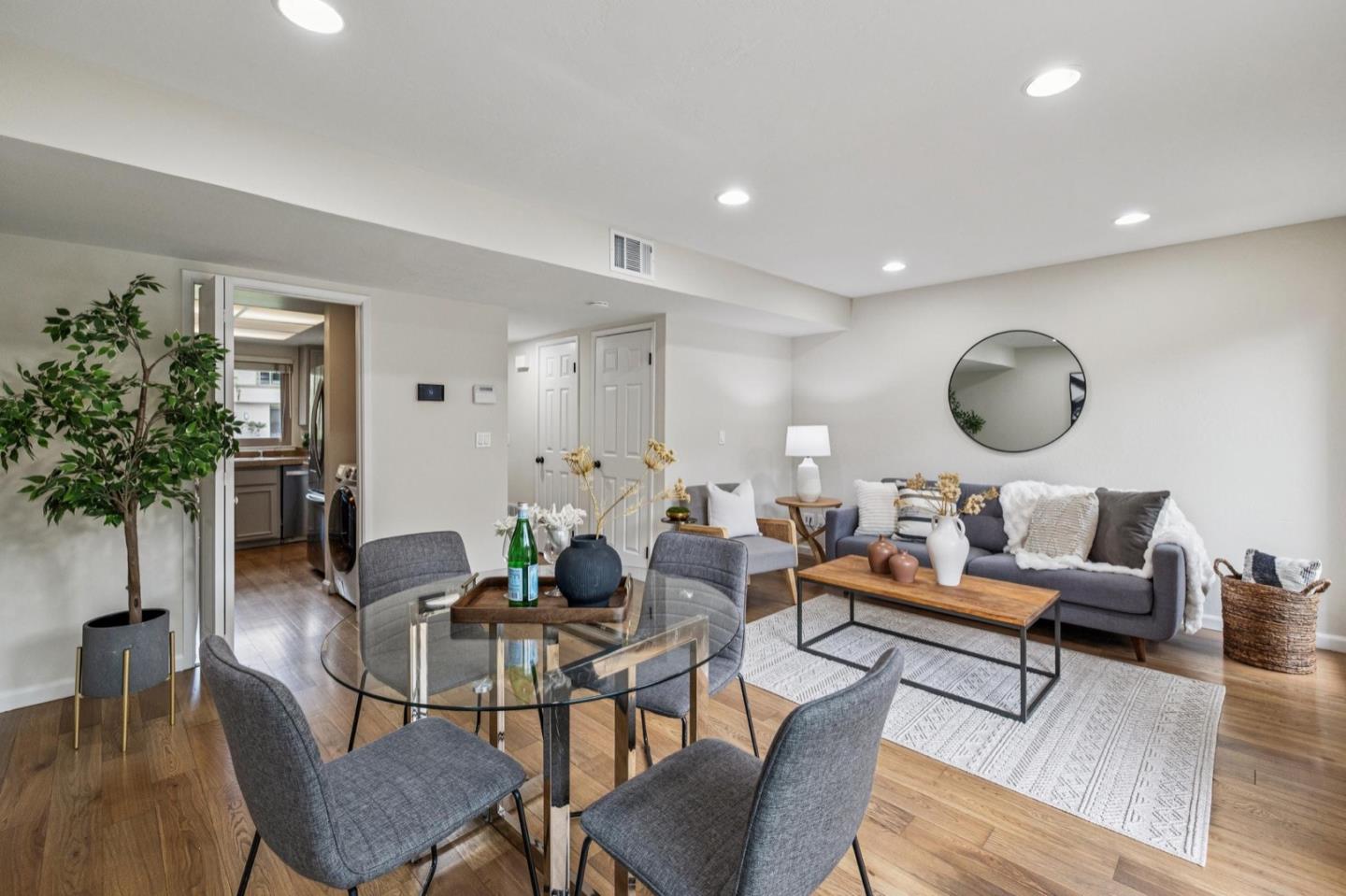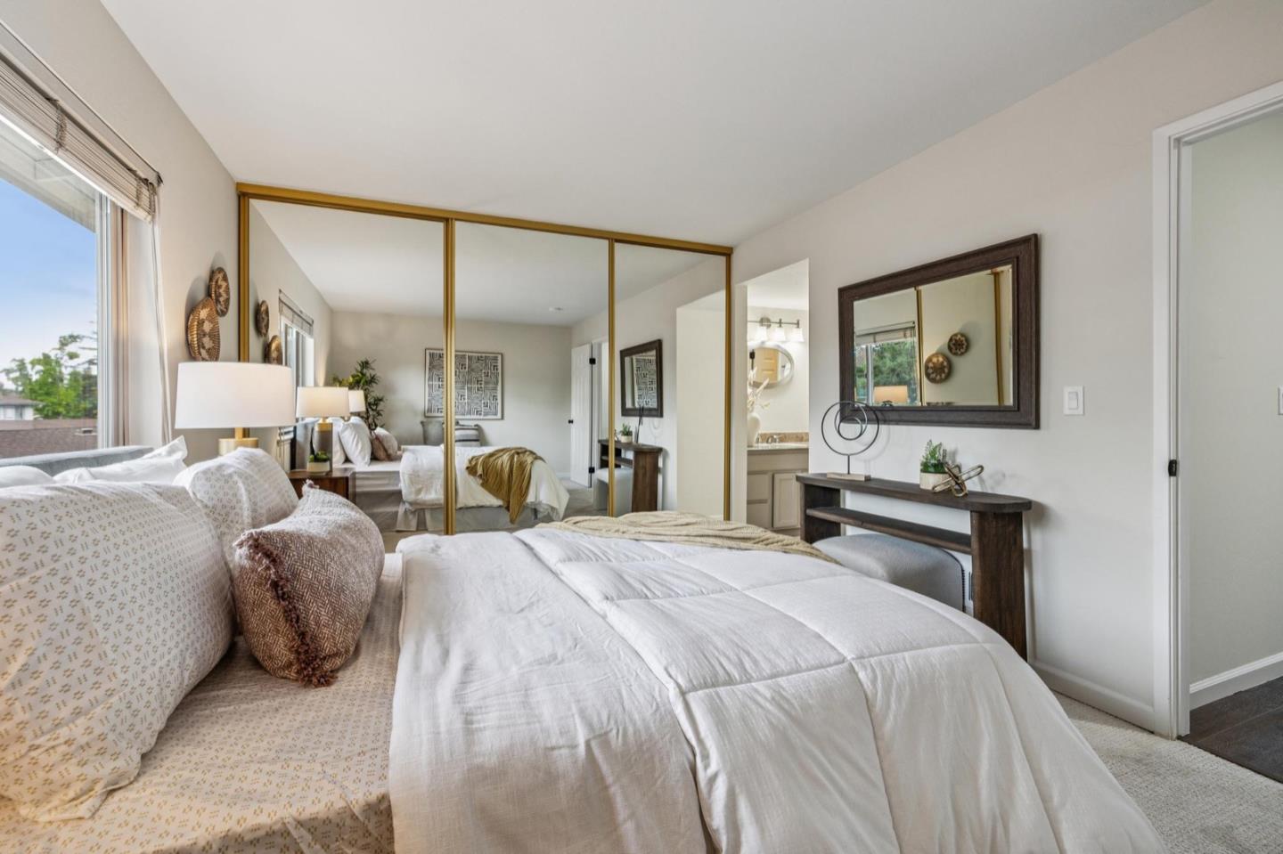PRIME SILICON VALLEY LOCATION near hundreds of tech and Fortune 500 companies. Central to it all is a charming 2BD, 2.5BA, end-unit townhouse condominium across from a lush greenbelt quad with sparkling swimming pool and manicured landscape. Featuring a freshly painted interior, refinished hardwood floors, new wood laminate flooring on ascending stairs and upper-level landing, and new carpeting in bedrooms. The foyer extends to a granite-finished kitchen with all appliances, and a living/dining room that opens to a private, freshly landscaped courtyard. Upstairs are two bedrooms including the suite with a mirrored closet and open vanity/dressing room. In-house laundry with a full-size washer and dryer and two-car garage (accessed from the courtyard), add to the appeal. For convenience and leisure ease, the home is near vibrant Downtown Campbell, Los Gatos Creek Trail, The Pruneyard, Whole Foods, Trader Joes, Safeway, and Highway 17.