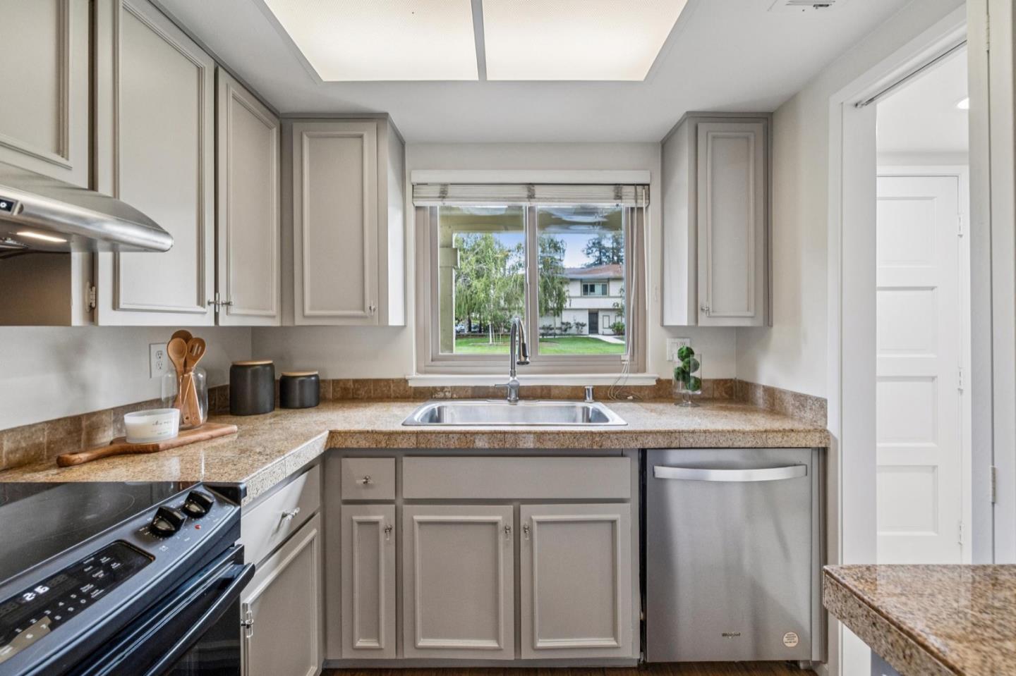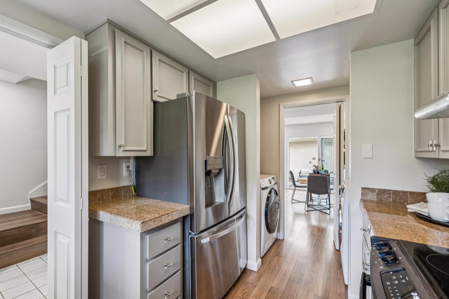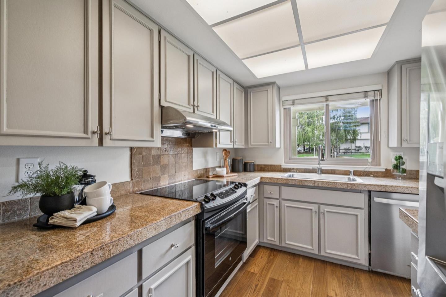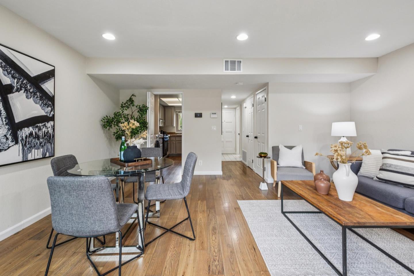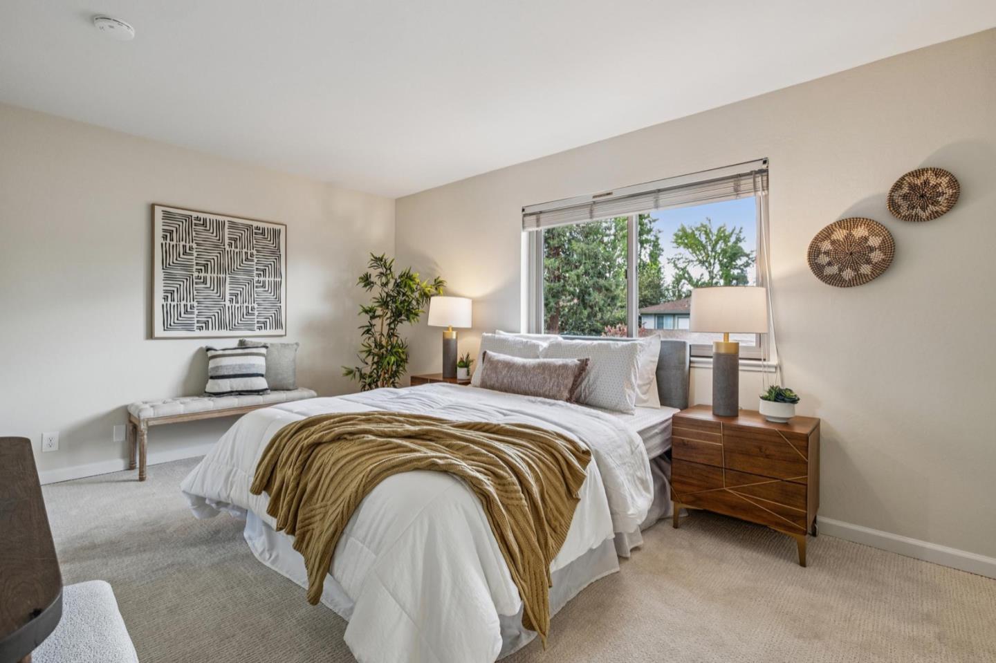 PRIME SILICON VALLEY LOCATION near hundreds of tech and Fortune 500 companies. Central to it all is a charming 2BD, 2.5BA, end-unit townhouse condominium across from a lush greenbelt quad with sparkling swimming pool and manicured landscape. Featuring a freshly painted interior, refinished hardwood floors, new wood laminate flooring on ascending stairs and upper-level landing, and new carpeting in bedrooms. The foyer extends to a granite-finished kitchen with all appliances, and a living/dining room that opens to a private, freshly landscaped courtyard. Upstairs are two bedrooms including the suite with a mirrored closet and open vanity/dressing room. In-house laundry with a full-size washer and dryer and two-car garage (accessed from the courtyard), add to the appeal. For convenience and leisure ease, the home is near vibrant Downtown Campbell, Los Gatos Creek Trail, The Pruneyard, Whole Foods, Trader Joes, Safeway, and Highway 17.