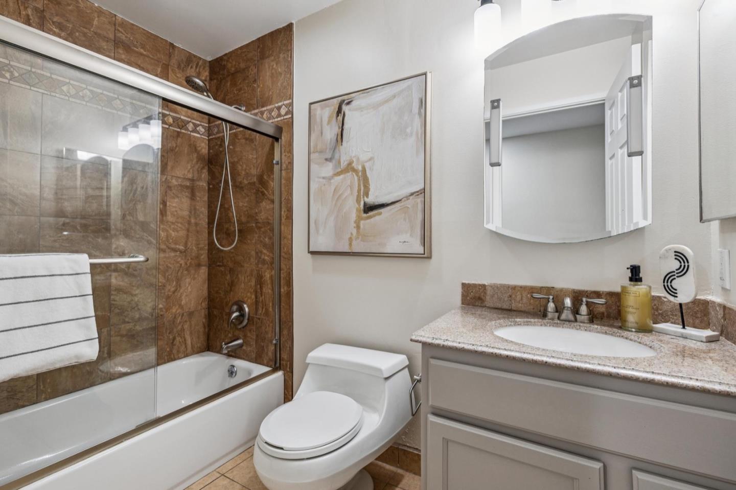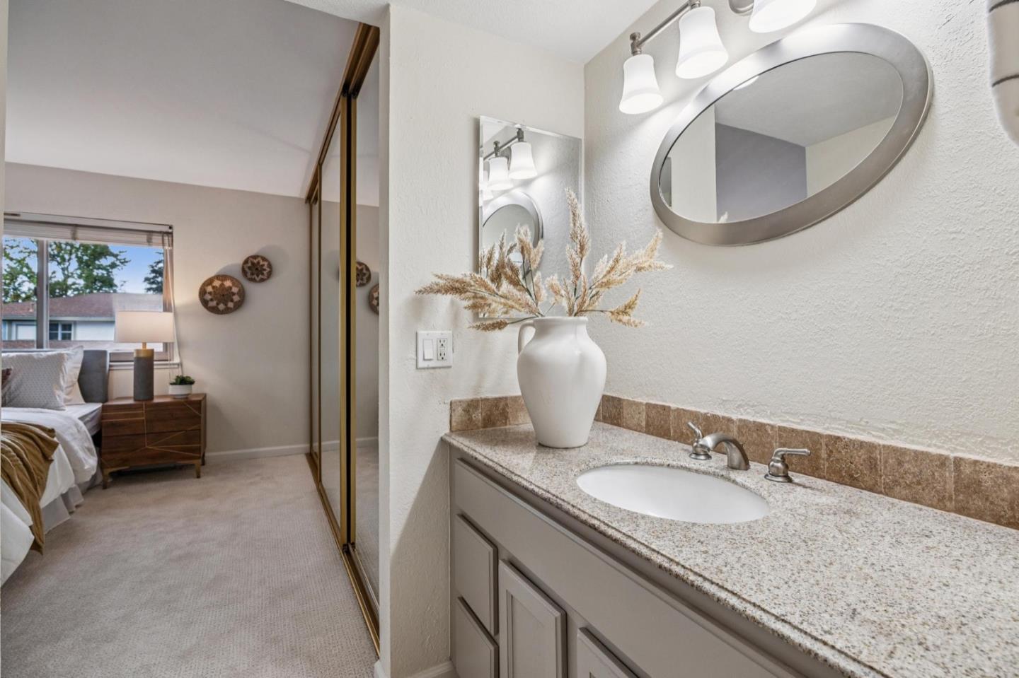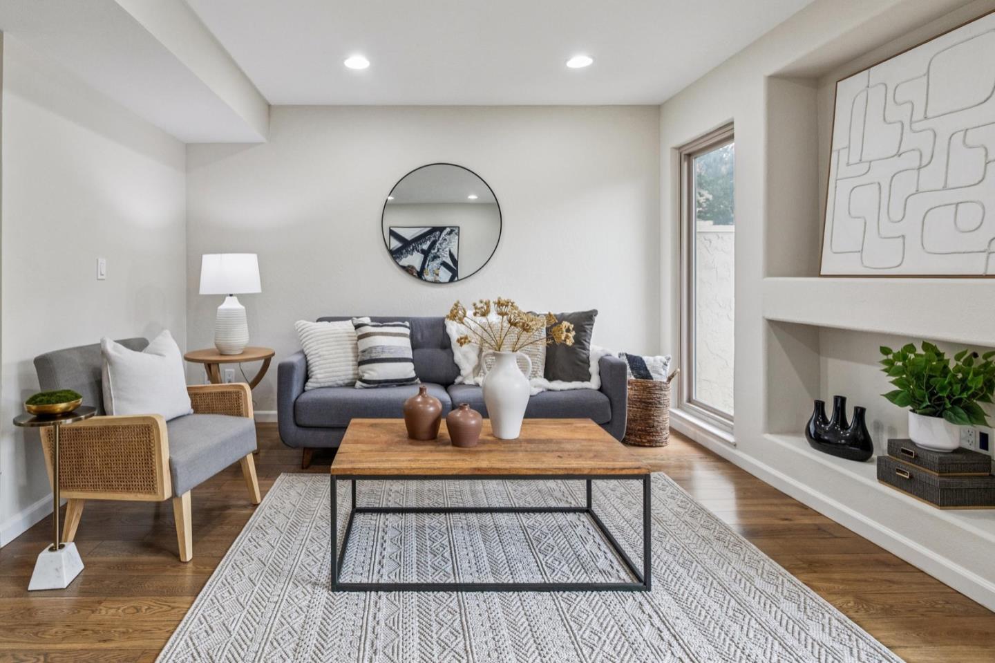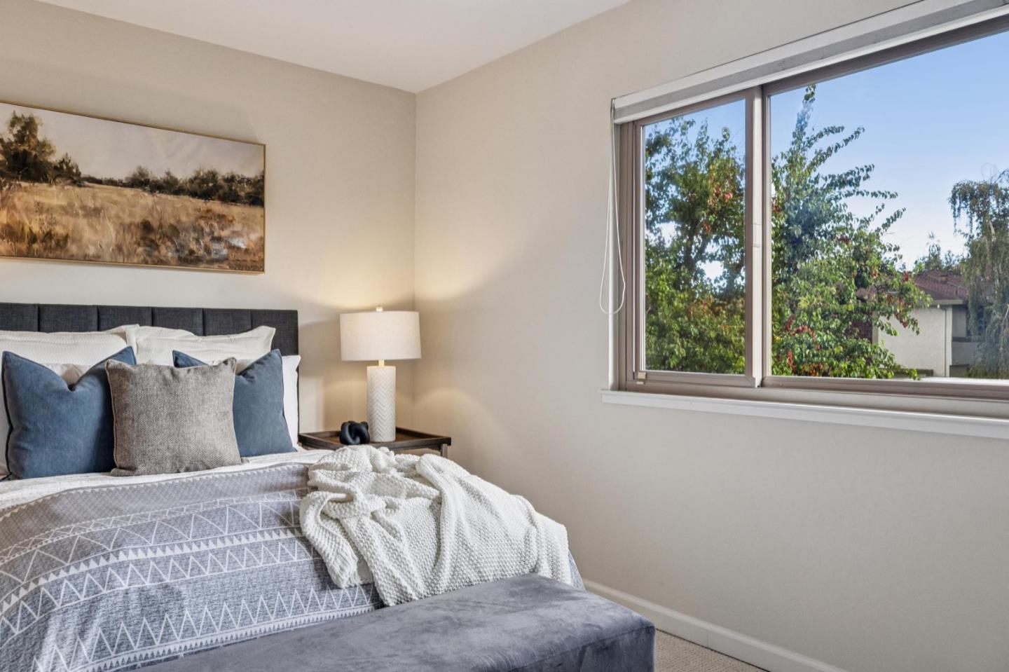 PRIME SILICON VALLEY LOCATION near hundreds of tech and Fortune 500 companies. Central to it all is a charming 2BD, 2.5BA, end-unit townhouse condominium across from a lush greenbelt quad with sparkling swimming pool and manicured landscape. Featuring a freshly painted interior, refinished hardwood floors, new wood laminate flooring on ascending stairs and upper-level landing, and new carpeting in bedrooms. The foyer extends to a granite-finished kitchen with all appliances, and a living/dining room that opens to a private, freshly landscaped courtyard. Upstairs are two bedrooms including the suite with a mirrored closet and open vanity/dressing room. In-house laundry with a full-size washer and dryer and two-car garage (accessed from the courtyard), add to the appeal. For convenience and leisure ease, the home is near vibrant Downtown Campbell, Los Gatos Creek Trail, The Pruneyard, Whole Foods, Trader Joes, Safeway, and Highway 17.