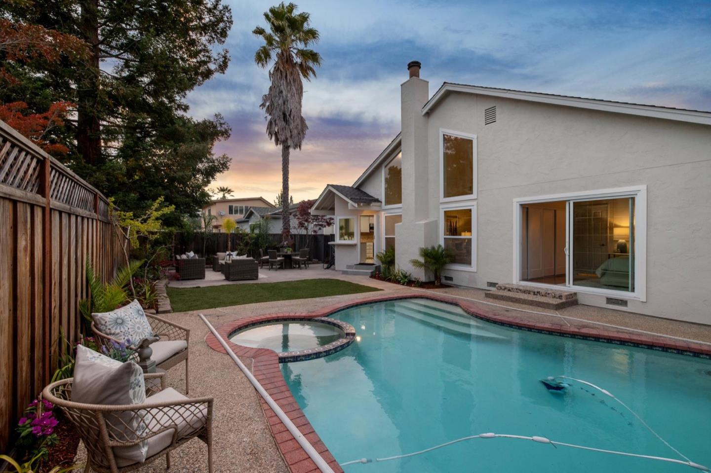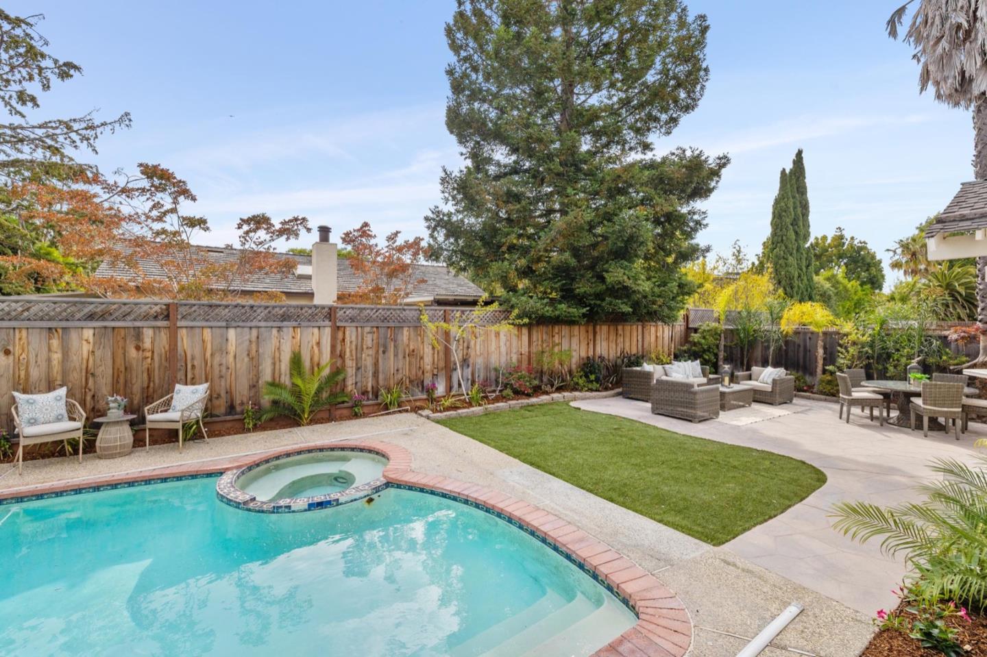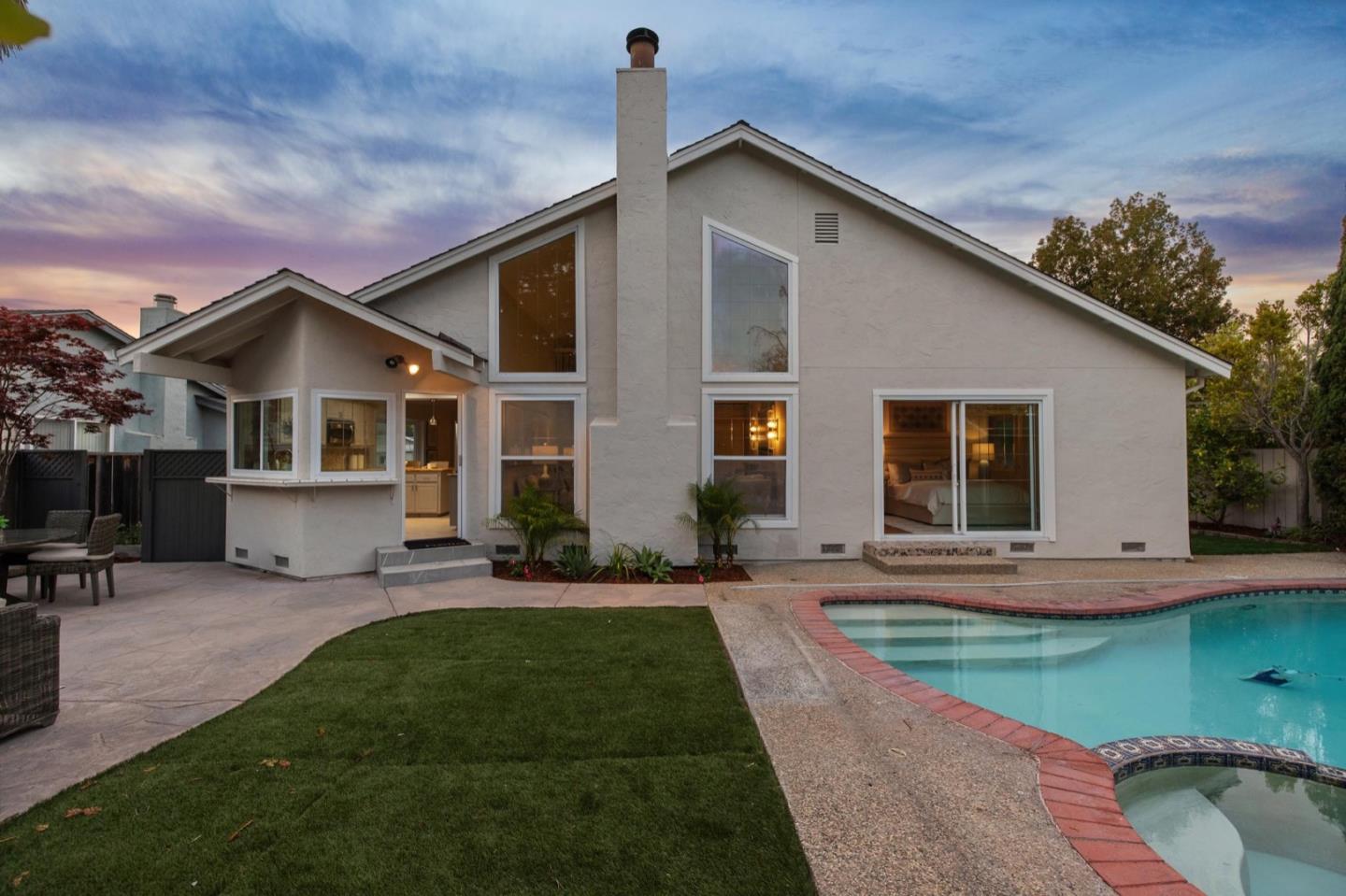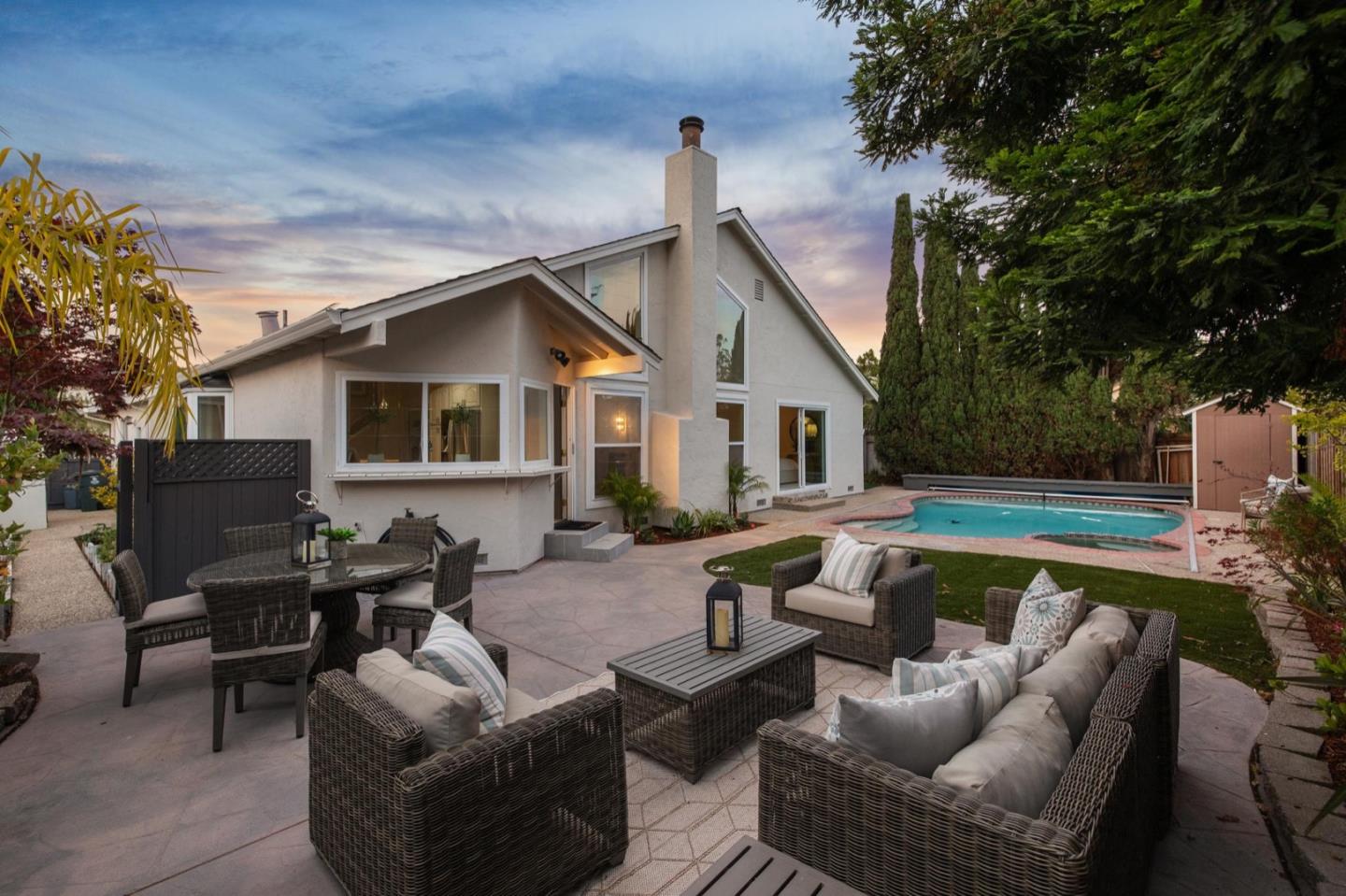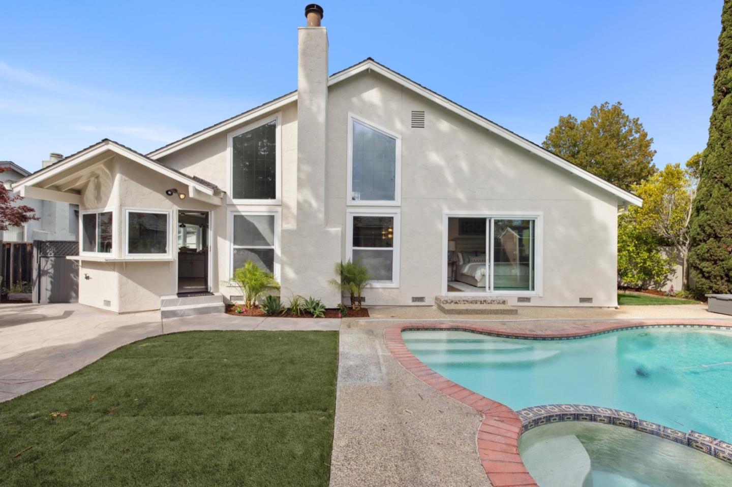 UPSCALE LIVING ON A PRIVATE OASIS IN REDWOOD SHORES Enjoy an updated 3BD, 2BA home with a bougie family-room loft on a private lot with a pool, spa, front and back yard patios and flourishing landscape with a medley of flowers, shrubs, mature trees, lush lawns and raised garden beds for farm-to-table meals. Featuring two-story windows in the living with fireplace, an effortless granite-finished kitchen with dining/homework counter, open dining area with large bay window seat, a family-room lounge loft with versatile implications and an airy primary bedroom with ensuite bathroom and poolside patio access. The home has updated kitchen and baths, vaulted ceilings, refinished hardwood floors, granite, quartz and tile surfaces, new interior and exterior paint, charming bay window seats, sparkling windows and glass doors and refreshed landscaping. Immerse yourself in resort-style living just a block off the Belmont Channel of Redwood Shores Lagoon, near Marlin Park and highly rated schools.