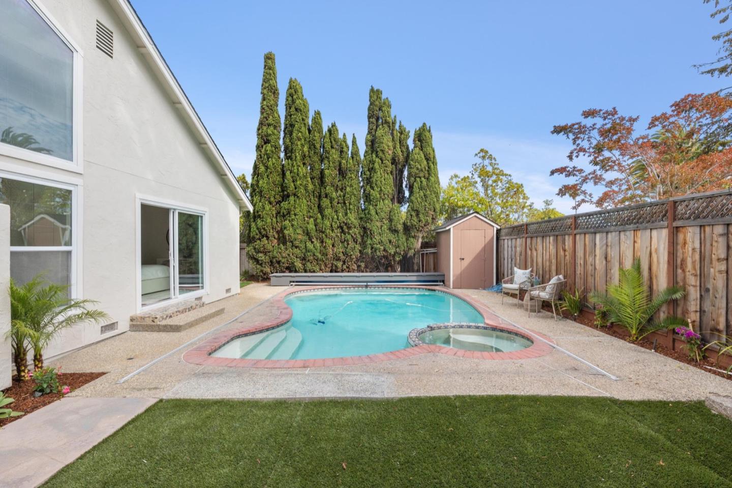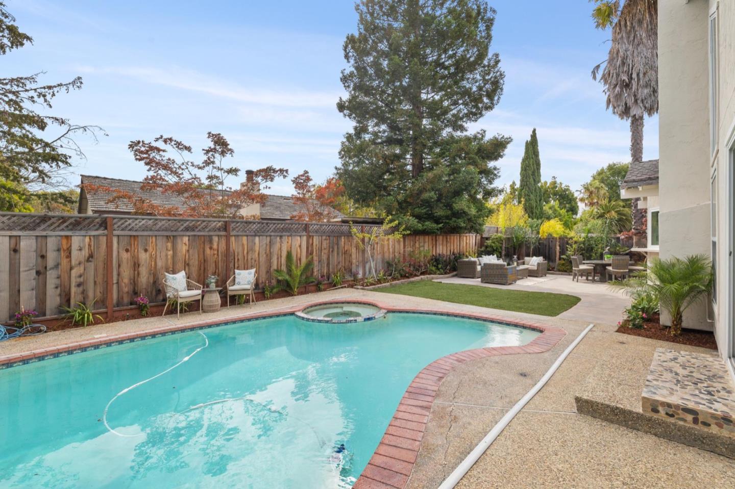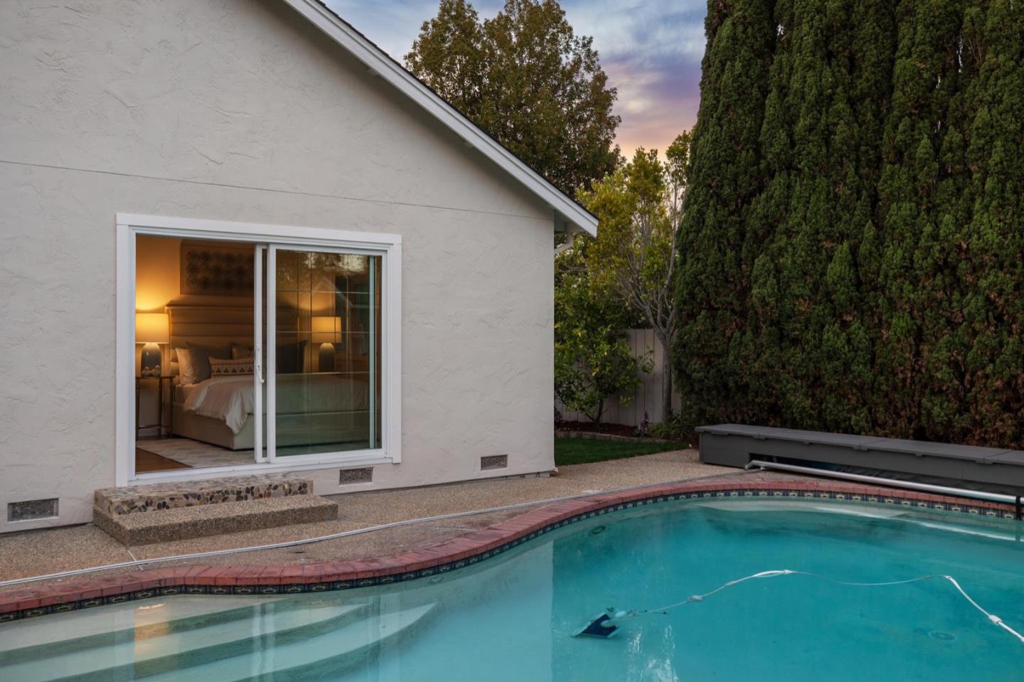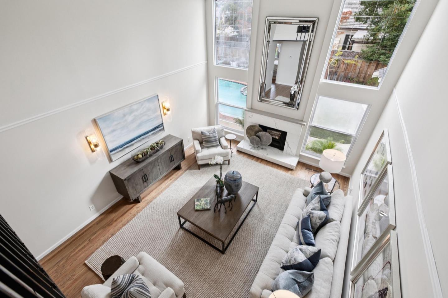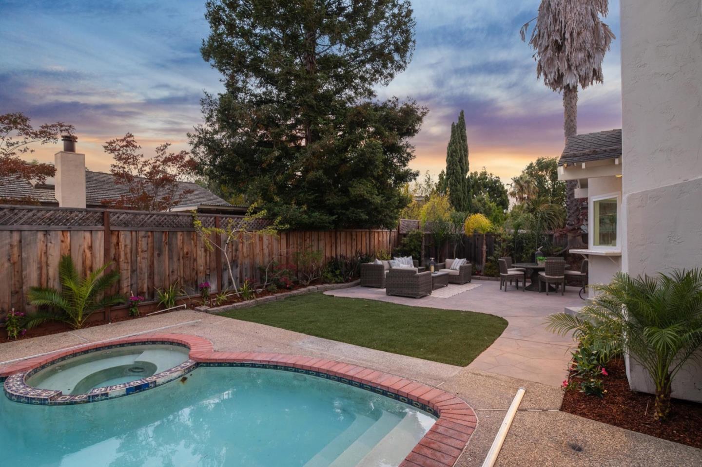 UPSCALE LIVING ON A PRIVATE OASIS IN REDWOOD SHORES Enjoy an updated 3BD, 2BA home with a bougie family-room loft on a private lot with a pool, spa, front and back yard patios and flourishing landscape with a medley of flowers, shrubs, mature trees, lush lawns and raised garden beds for farm-to-table meals. Featuring two-story windows in the living with fireplace, an effortless granite-finished kitchen with dining/homework counter, open dining area with large bay window seat, a family-room lounge loft with versatile implications and an airy primary bedroom with ensuite bathroom and poolside patio access. The home has updated kitchen and baths, vaulted ceilings, refinished hardwood floors, granite, quartz and tile surfaces, new interior and exterior paint, charming bay window seats, sparkling windows and glass doors and refreshed landscaping. Immerse yourself in resort-style living just a block off the Belmont Channel of Redwood Shores Lagoon, near Marlin Park and highly rated schools.