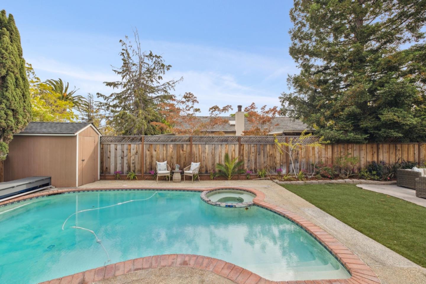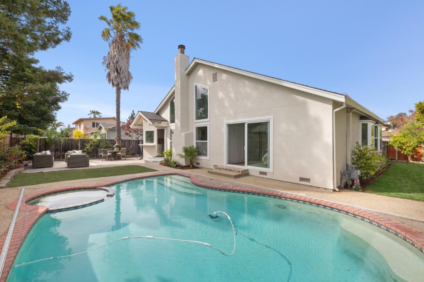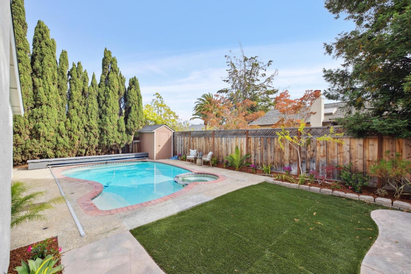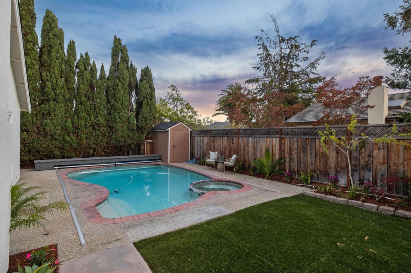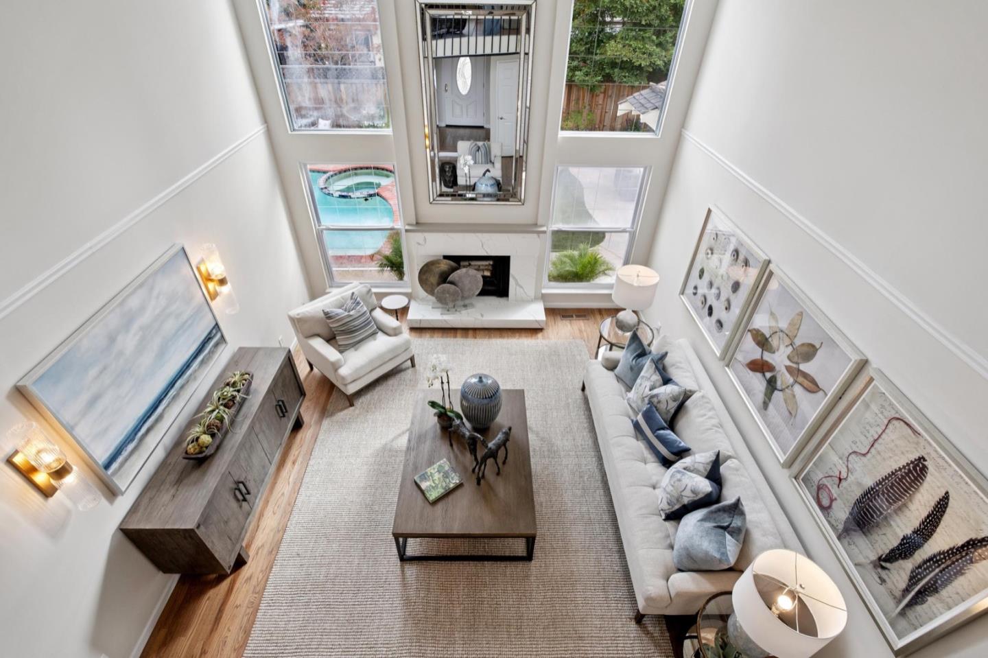UPSCALE LIVING ON A PRIVATE OASIS IN REDWOOD SHORES Enjoy an updated 3BD, 2BA home with a bougie family-room loft on a private lot with a pool, spa, front and back yard patios and flourishing landscape with a medley of flowers, shrubs, mature trees, lush lawns and raised garden beds for farm-to-table meals. Featuring two-story windows in the living with fireplace, an effortless granite-finished kitchen with dining/homework counter, open dining area with large bay window seat, a family-room lounge loft with versatile implications and an airy primary bedroom with ensuite bathroom and poolside patio access. The home has updated kitchen and baths, vaulted ceilings, refinished hardwood floors, granite, quartz and tile surfaces, new interior and exterior paint, charming bay window seats, sparkling windows and glass doors and refreshed landscaping. Immerse yourself in resort-style living just a block off the Belmont Channel of Redwood Shores Lagoon, near Marlin Park and highly rated schools.