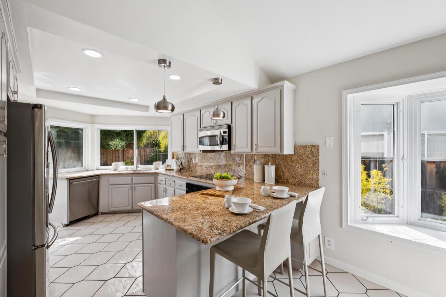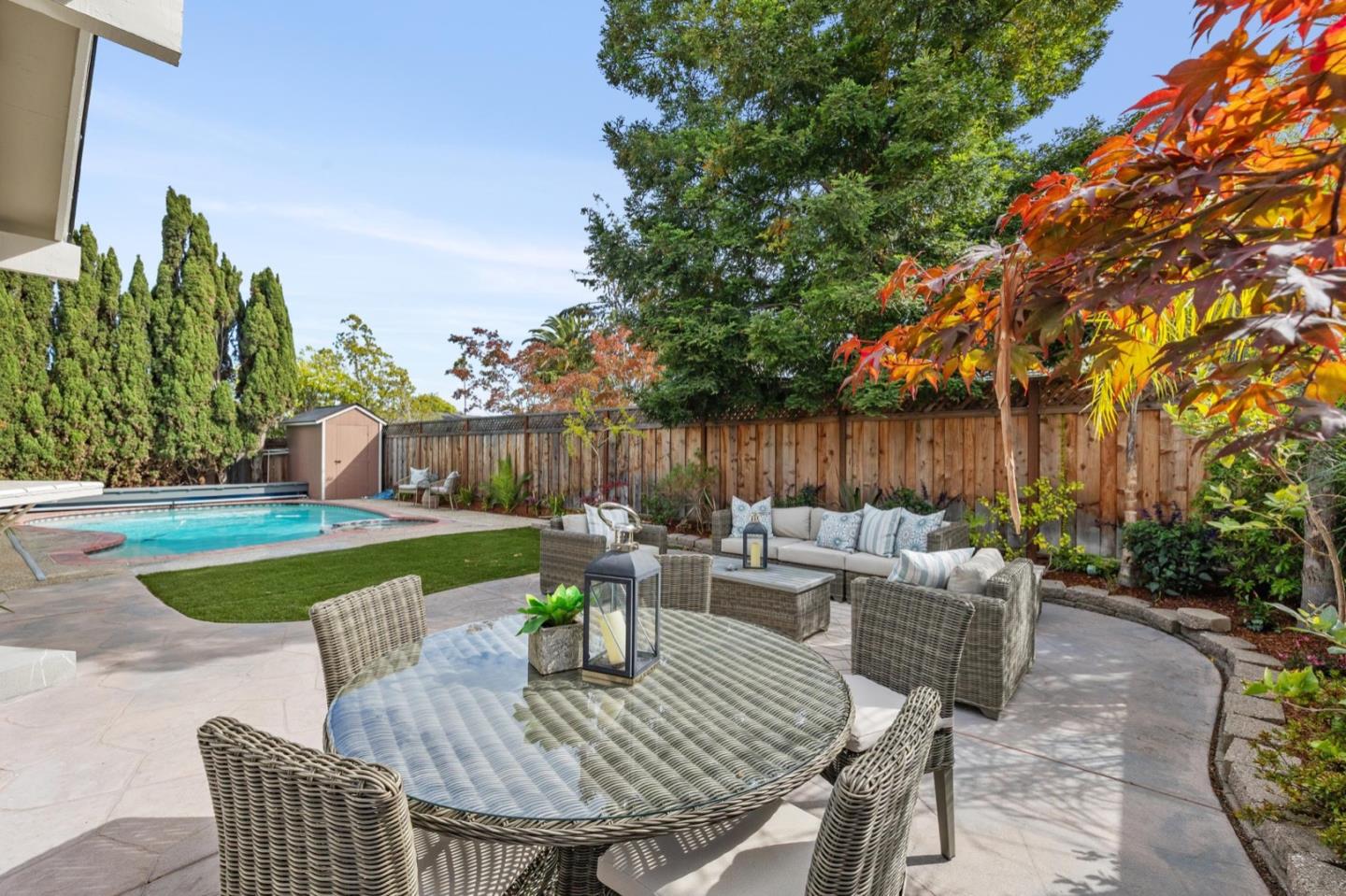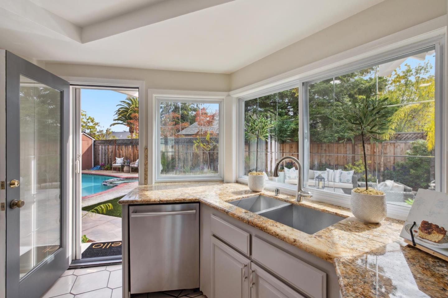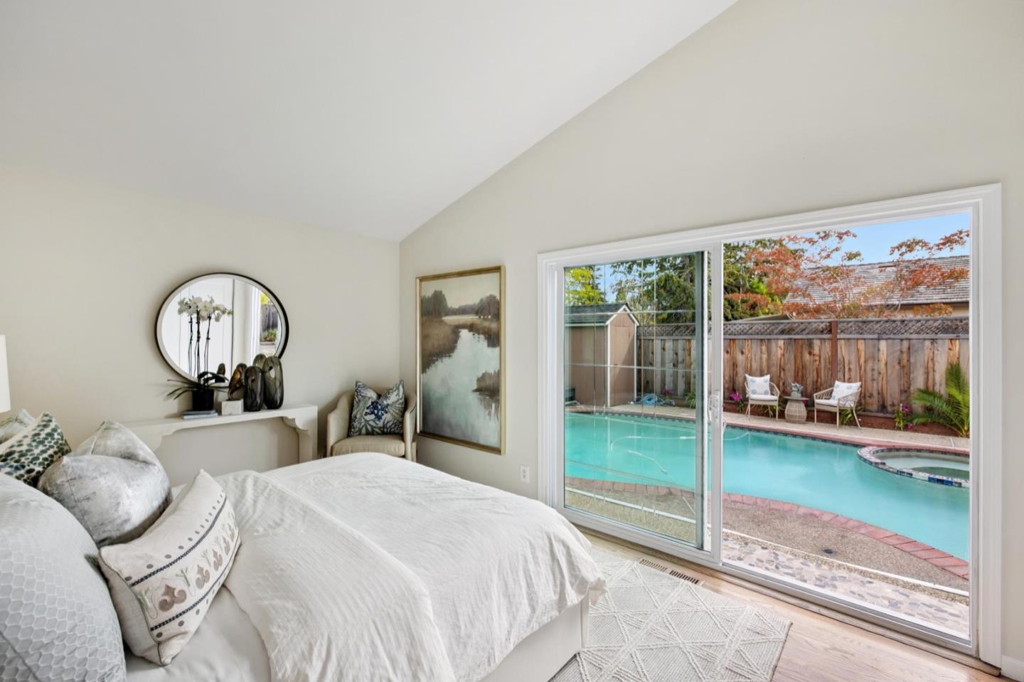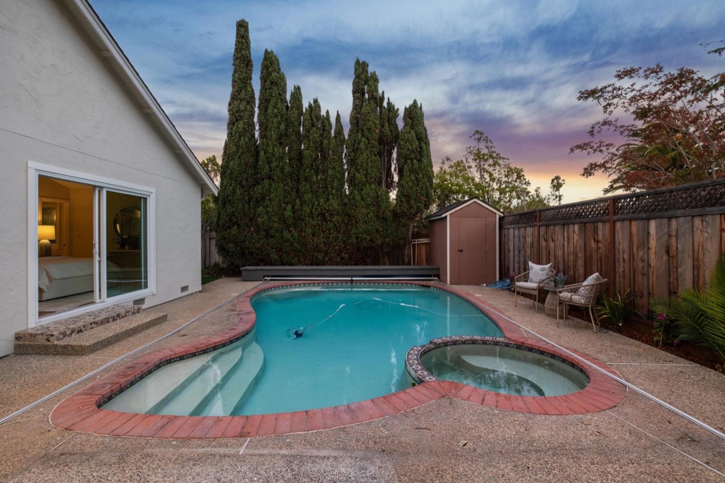 UPSCALE LIVING ON A PRIVATE OASIS IN REDWOOD SHORES Enjoy an updated 3BD, 2BA home with a bougie family-room loft on a private lot with a pool, spa, front and back yard patios and flourishing landscape with a medley of flowers, shrubs, mature trees, lush lawns and raised garden beds for farm-to-table meals. Featuring two-story windows in the living with fireplace, an effortless granite-finished kitchen with dining/homework counter, open dining area with large bay window seat, a family-room lounge loft with versatile implications and an airy primary bedroom with ensuite bathroom and poolside patio access. The home has updated kitchen and baths, vaulted ceilings, refinished hardwood floors, granite, quartz and tile surfaces, new interior and exterior paint, charming bay window seats, sparkling windows and glass doors and refreshed landscaping. Immerse yourself in resort-style living just a block off the Belmont Channel of Redwood Shores Lagoon, near Marlin Park and highly rated schools.