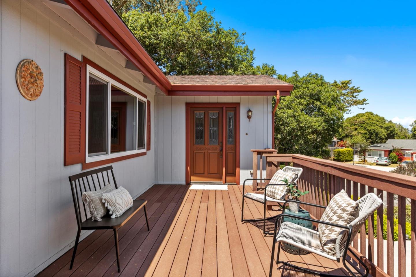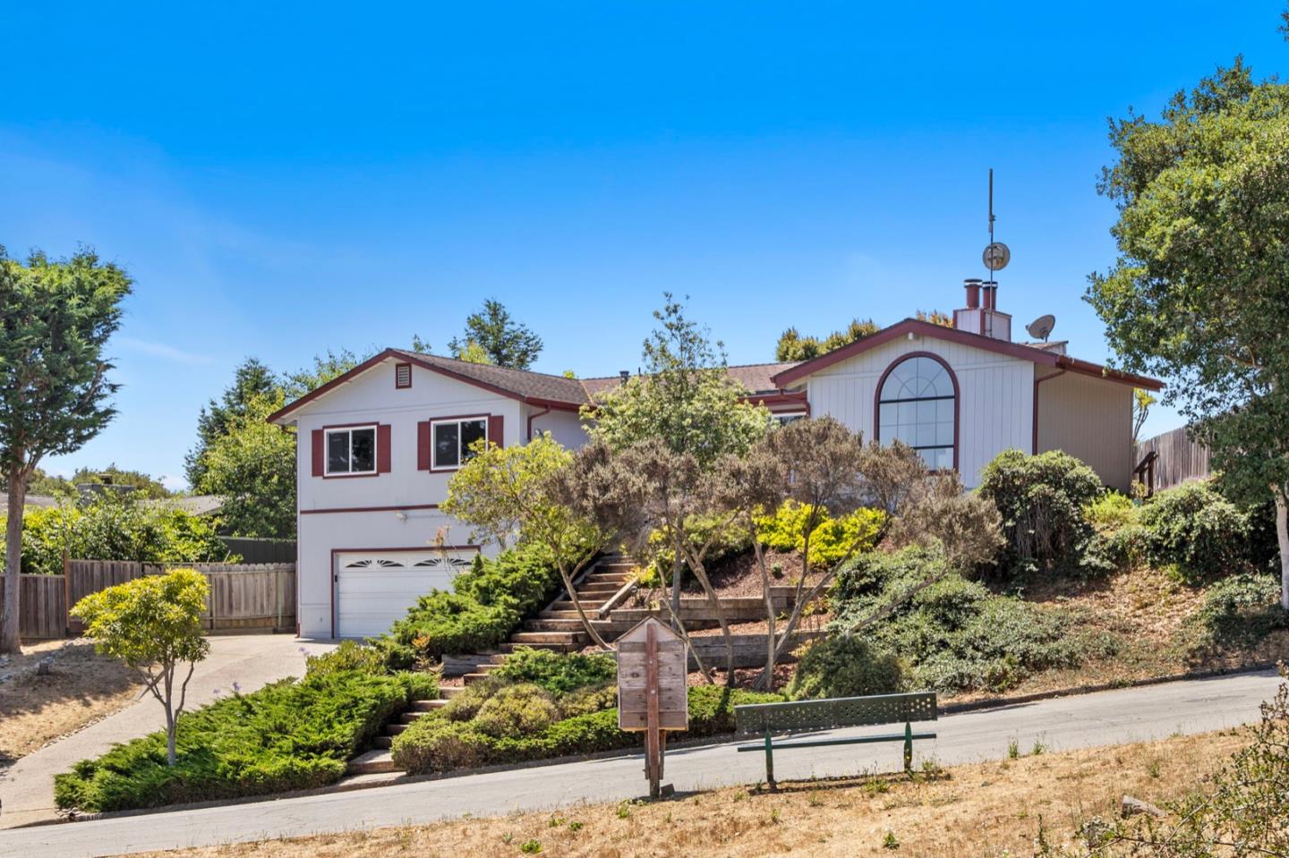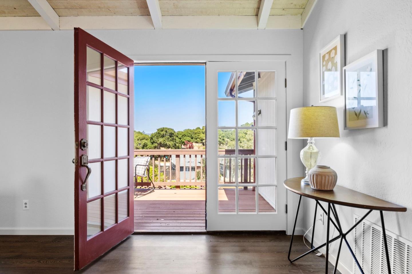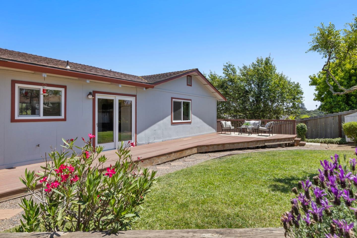 In an oak-studded countryside about six miles from Monterey Bay is a hilltop home that invokes warmth, character and a relaxed California lifestyle. Behind the understated facade is a striking Spanish Modern interior that is open and airy with an earthy elegance. The family-friendly 2,475+/- sf layout spans two levels with formal living and dining rooms, a huge family room, granite kitchen (each has outdoor access), three bedrooms upstairs, including the primary suite, and a spacious secondary suite/office on the lower level with private outdoor access. Striking home features include dramatic vaulted ceilings with beautiful wood planks and exposed beams, abundant natural light from large windows and glass doors (including a floor-to-ceiling Palladian window), newly painted crisp white walls, new Berber carpet and on-trend light fixtures, a sleek marble fireplace, a rugged stone fireplace, and seamless indoor-outdoor transitions to the .25+/-acre lot with decks, lawn and flower beds.