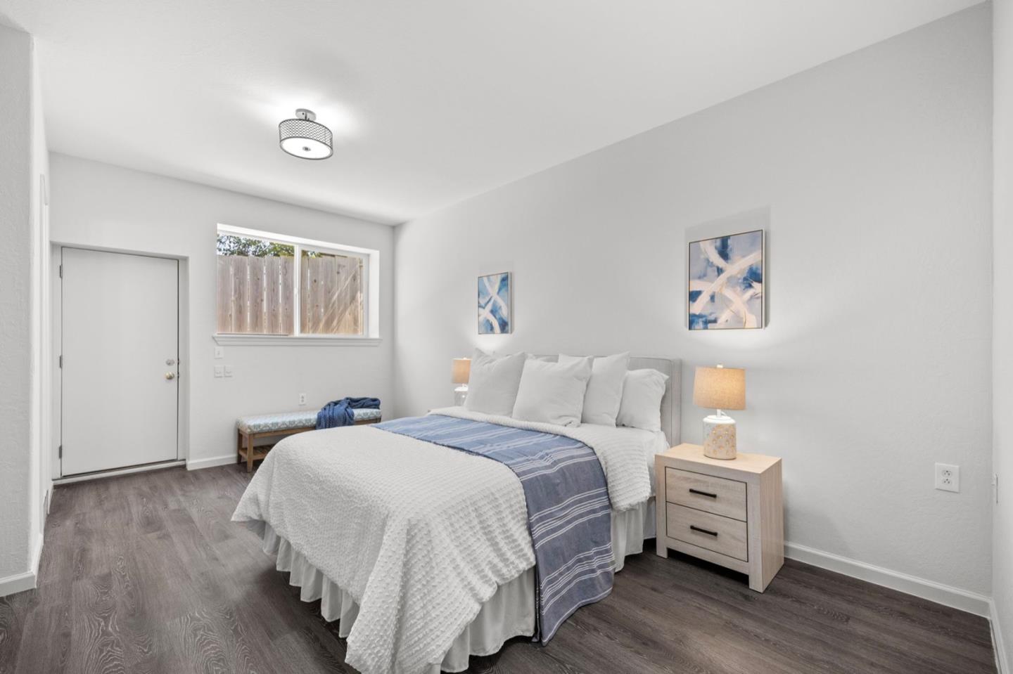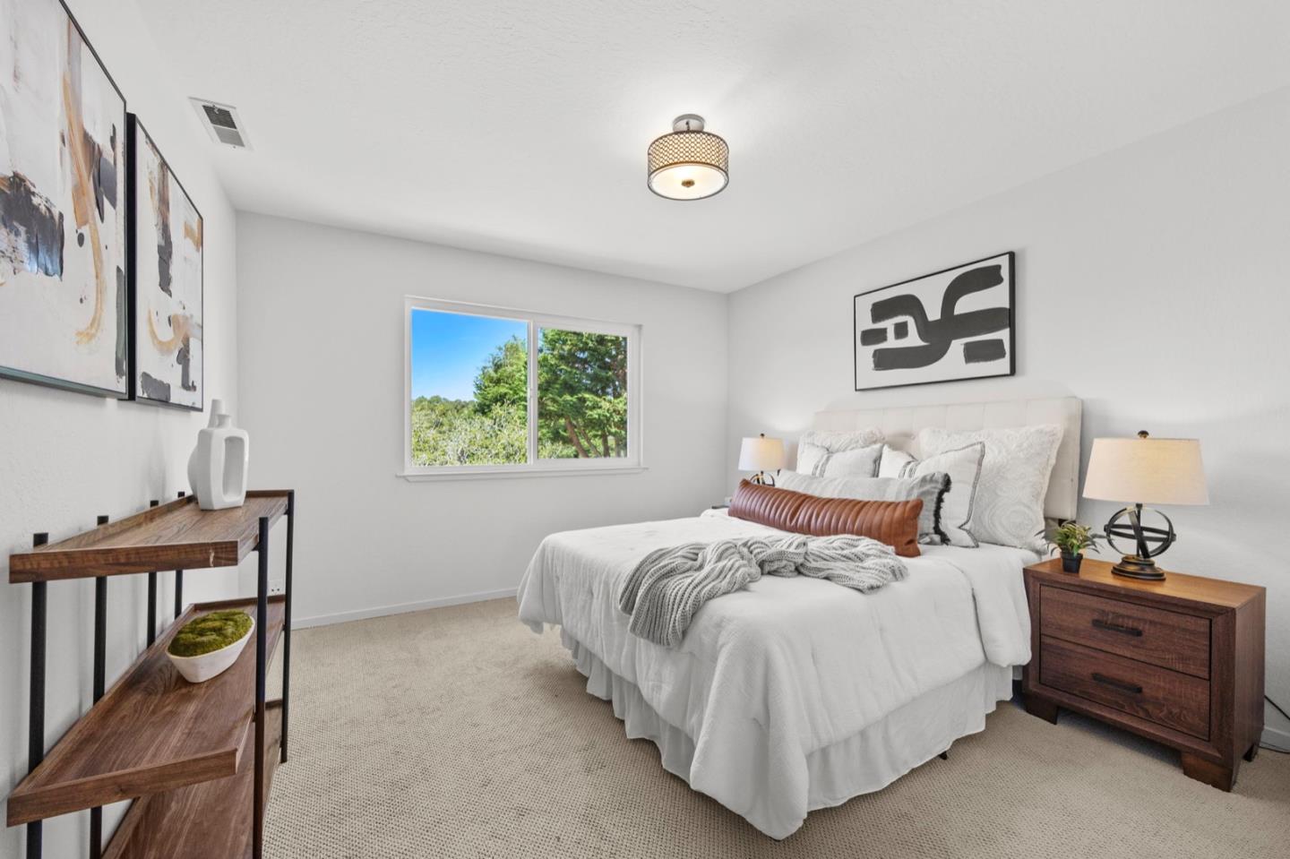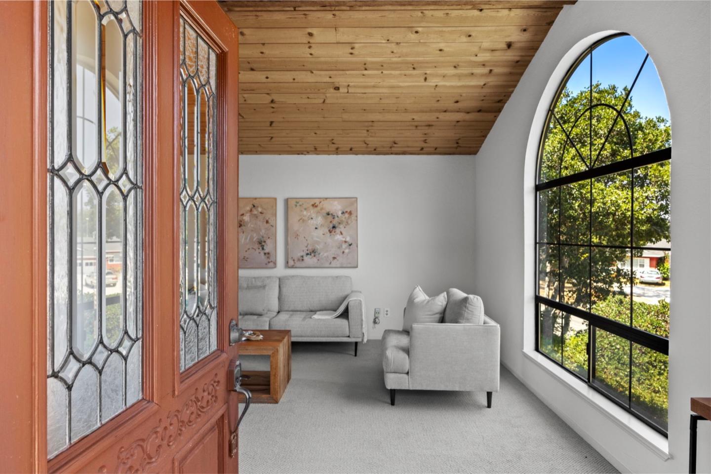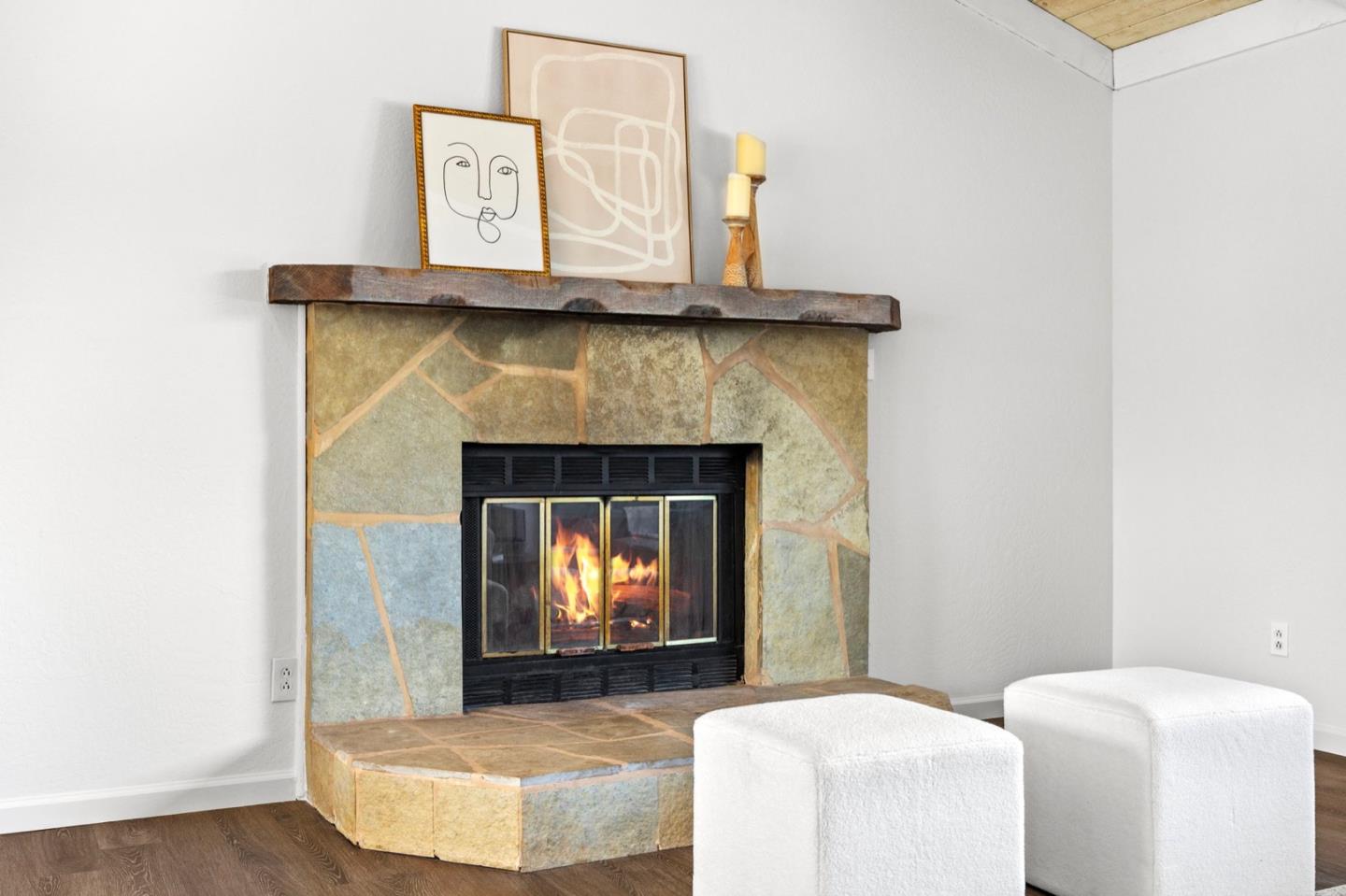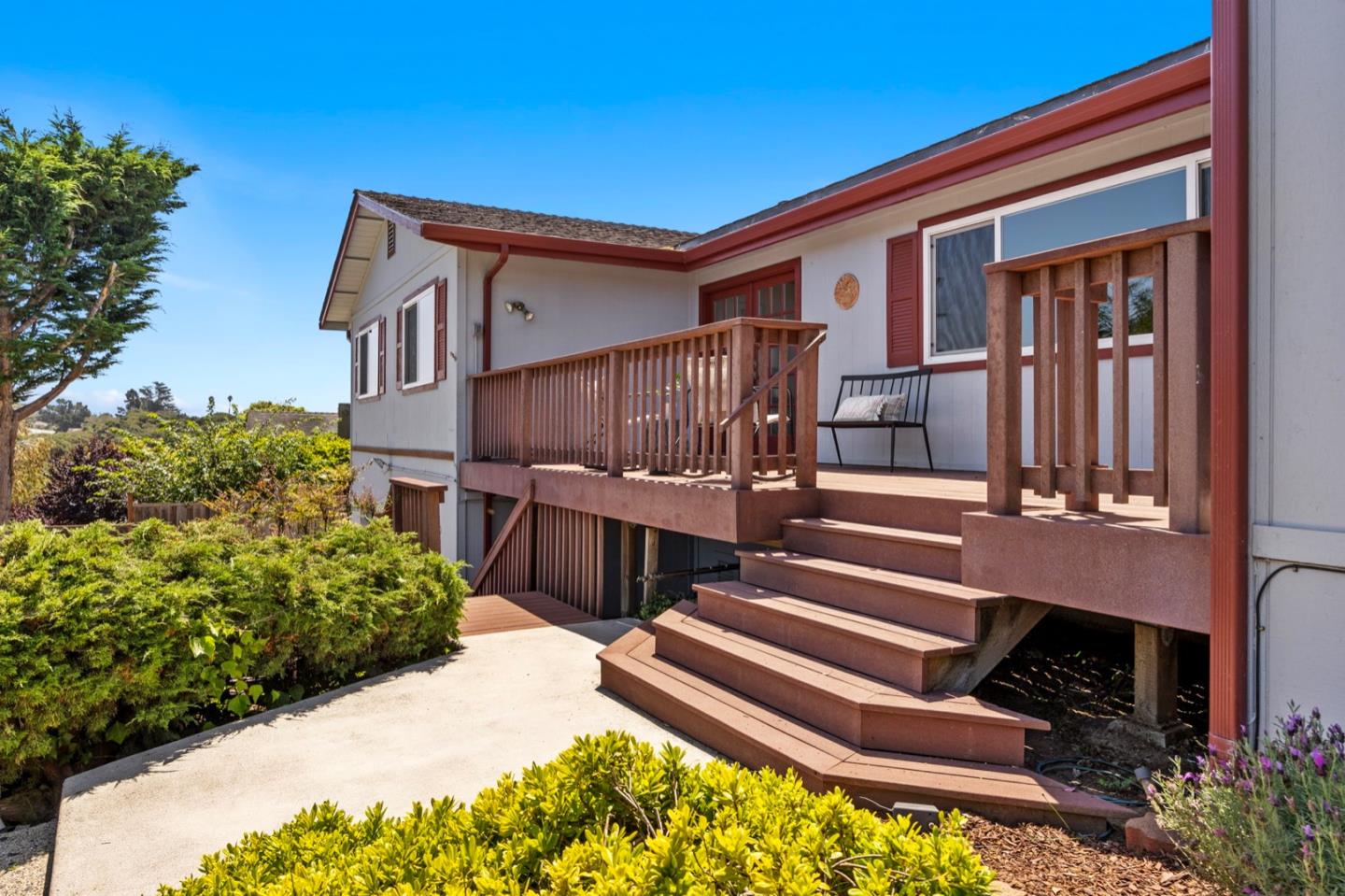 In an oak-studded countryside about six miles from Monterey Bay is a hilltop home that invokes warmth, character and a relaxed California lifestyle. Behind the understated facade is a striking Spanish Modern interior that is open and airy with an earthy elegance. The family-friendly 2,475+/- sf layout spans two levels with formal living and dining rooms, a huge family room, granite kitchen (each has outdoor access), three bedrooms upstairs, including the primary suite, and a spacious secondary suite/office on the lower level with private outdoor access. Striking home features include dramatic vaulted ceilings with beautiful wood planks and exposed beams, abundant natural light from large windows and glass doors (including a floor-to-ceiling Palladian window), newly painted crisp white walls, new Berber carpet and on-trend light fixtures, a sleek marble fireplace, a rugged stone fireplace, and seamless indoor-outdoor transitions to the .25+/-acre lot with decks, lawn and flower beds.