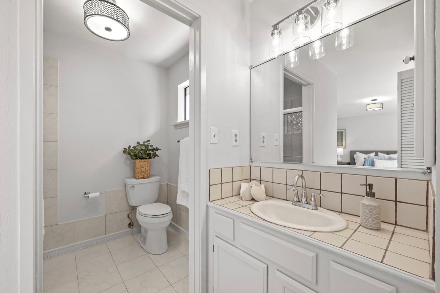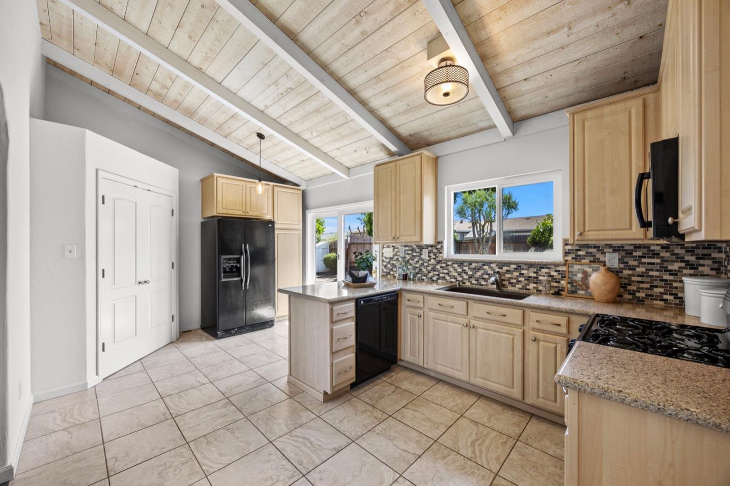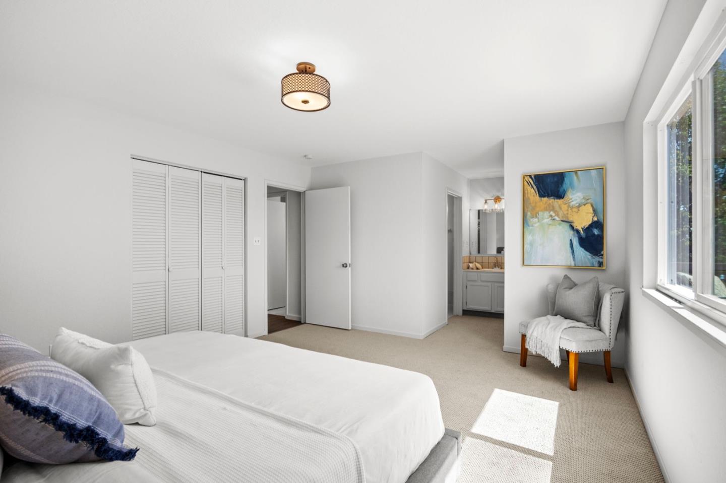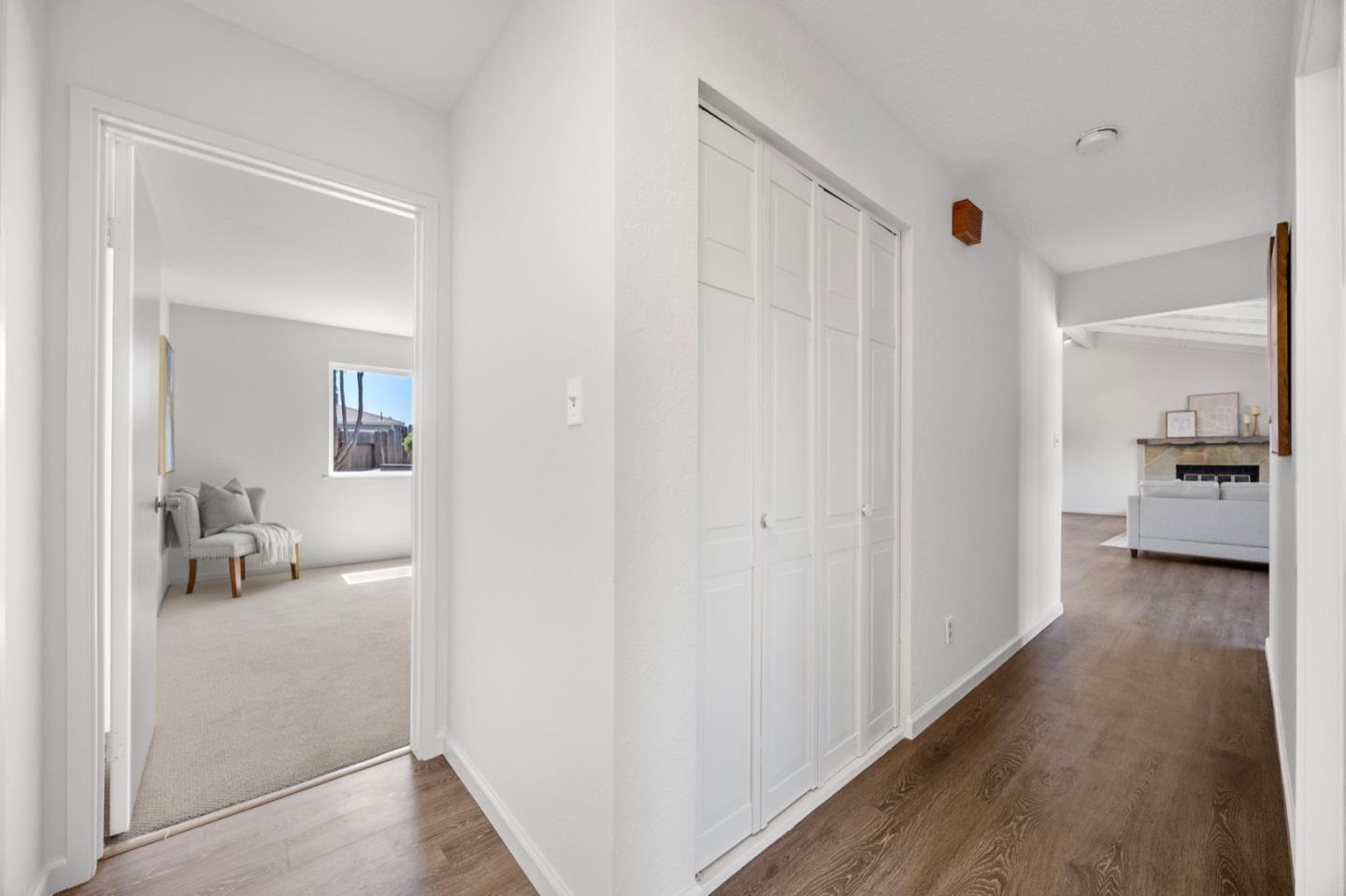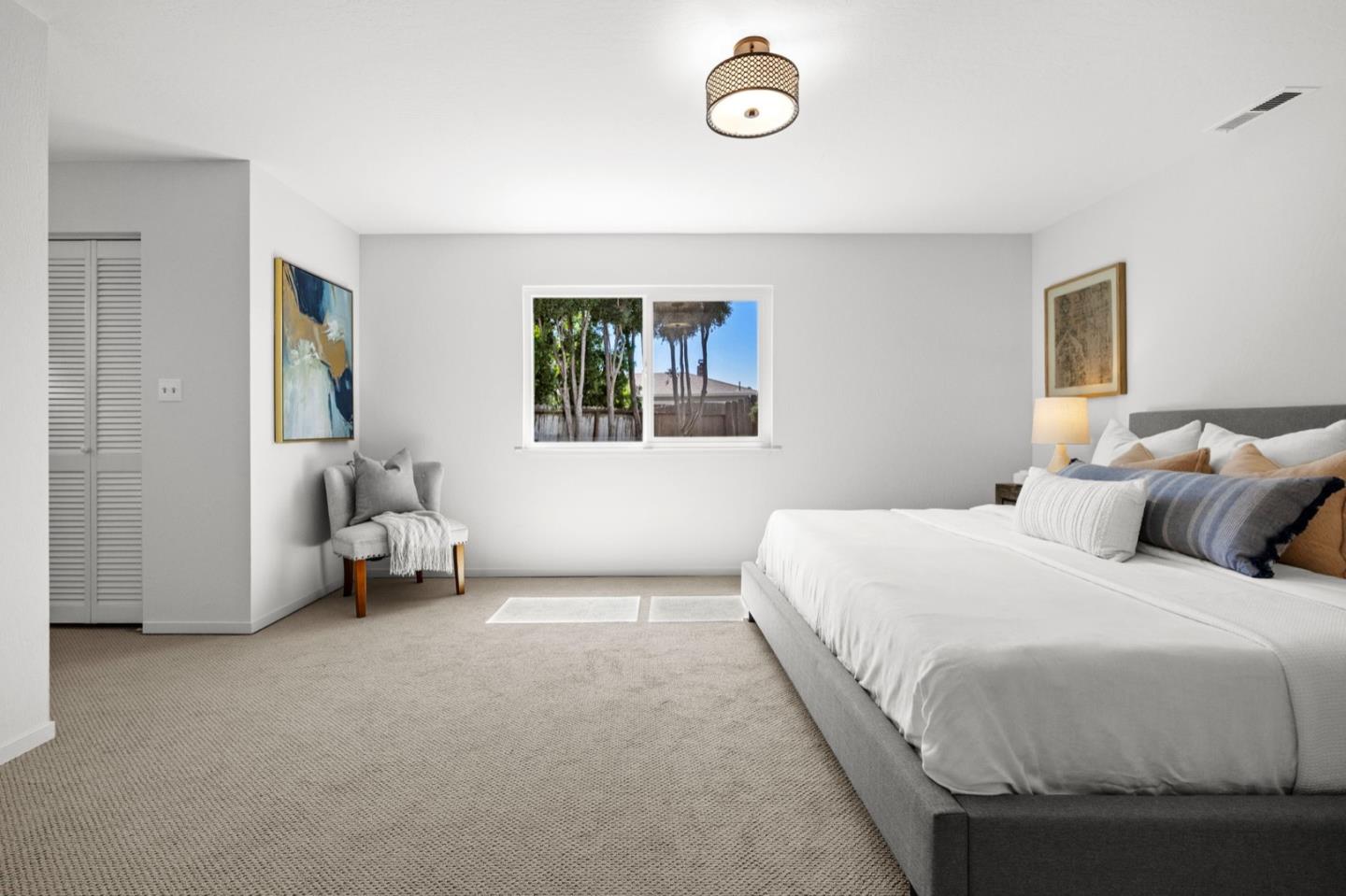 In an oak-studded countryside about six miles from Monterey Bay is a hilltop home that invokes warmth, character and a relaxed California lifestyle. Behind the understated facade is a striking Spanish Modern interior that is open and airy with an earthy elegance. The family-friendly 2,475+/- sf layout spans two levels with formal living and dining rooms, a huge family room, granite kitchen (each has outdoor access), three bedrooms upstairs, including the primary suite, and a spacious secondary suite/office on the lower level with private outdoor access. Striking home features include dramatic vaulted ceilings with beautiful wood planks and exposed beams, abundant natural light from large windows and glass doors (including a floor-to-ceiling Palladian window), newly painted crisp white walls, new Berber carpet and on-trend light fixtures, a sleek marble fireplace, a rugged stone fireplace, and seamless indoor-outdoor transitions to the .25+/-acre lot with decks, lawn and flower beds.